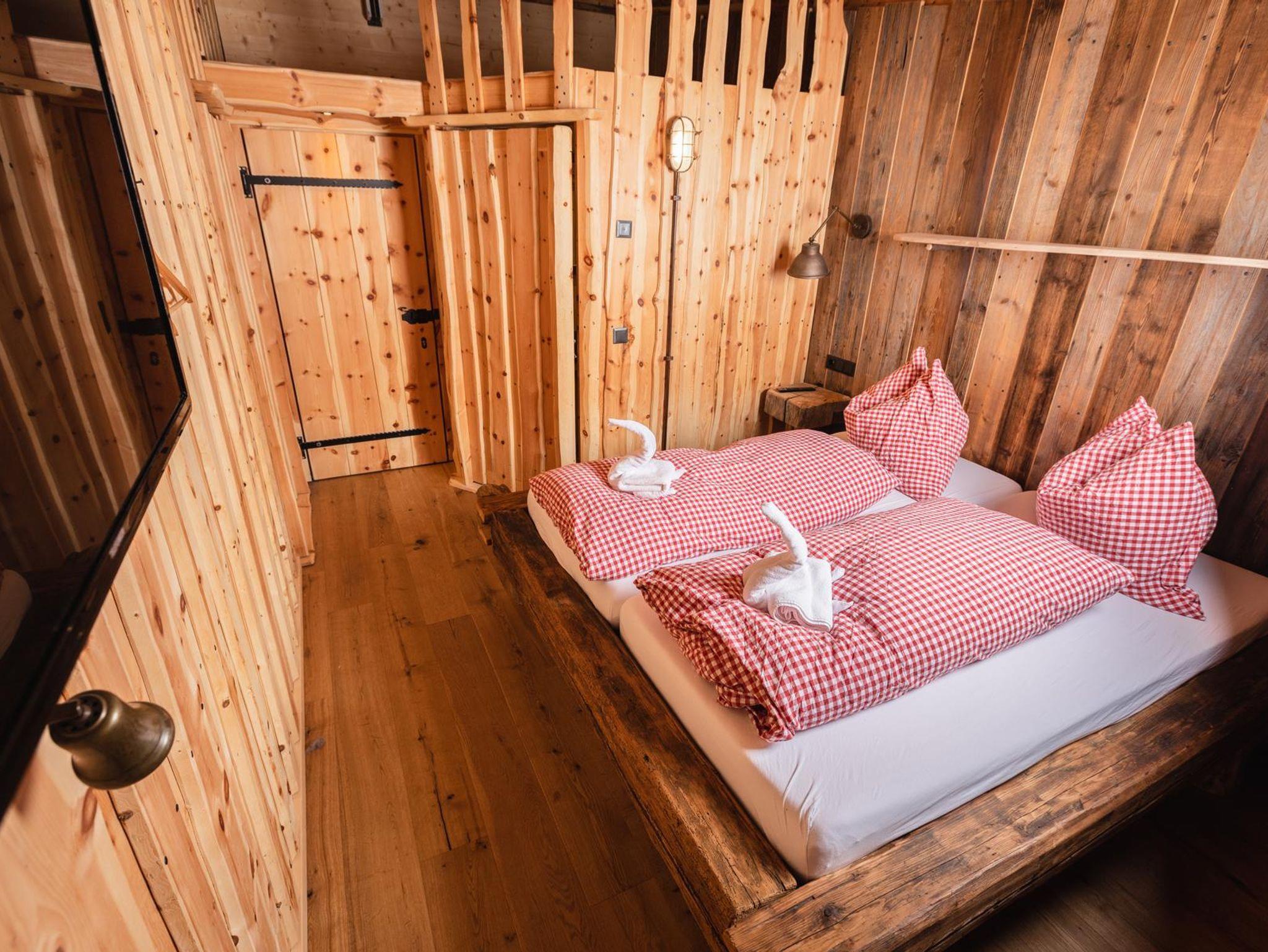 Unsere hellen, gemütlichen Zimmer sind vorrangig mit Zirbenholz eingerichtet, das nicht nur optisch etwas hermacht, angenehmen Duft verbreitet und für eine gemütliche Atmosphäre sorgt. Studien haben belegt, was vor Jahrhunderten bereits bekannt war: Zirbenholz hat eine messbar positive Wirkung auf das Wohlbefinden – und dein Wohlbefinden liegt uns auf der Stoa Alm am Herzen! Unsere Doppelzimmer sind mit einem Doppelbett, einem TV sowie Dusche und WC ausgestattet.