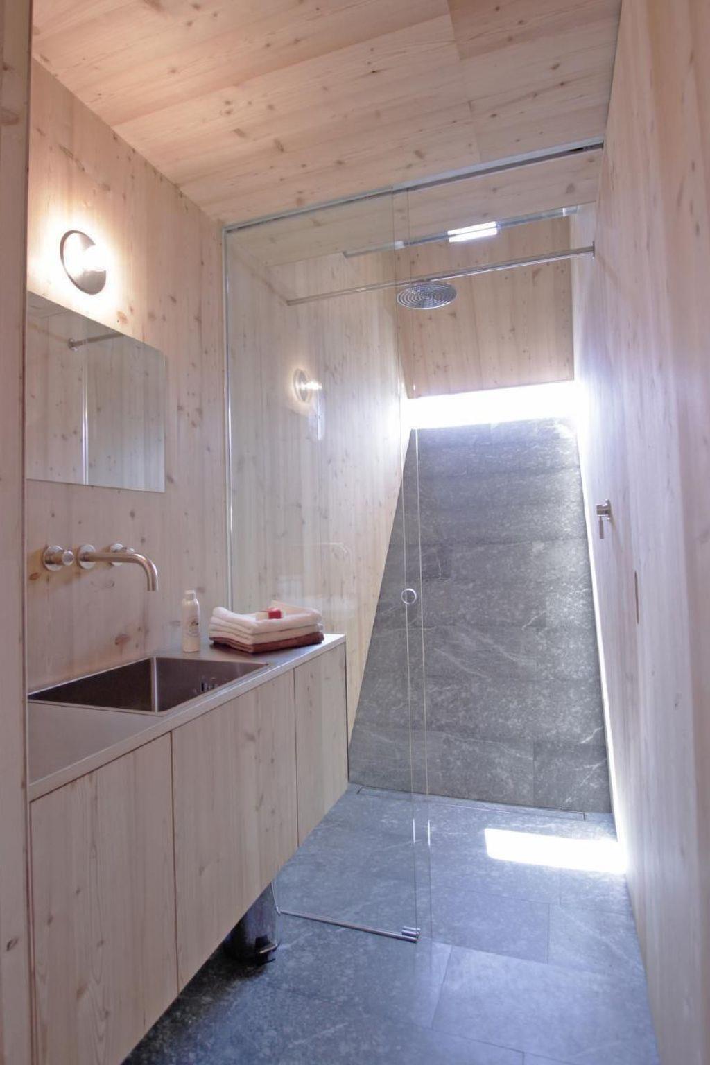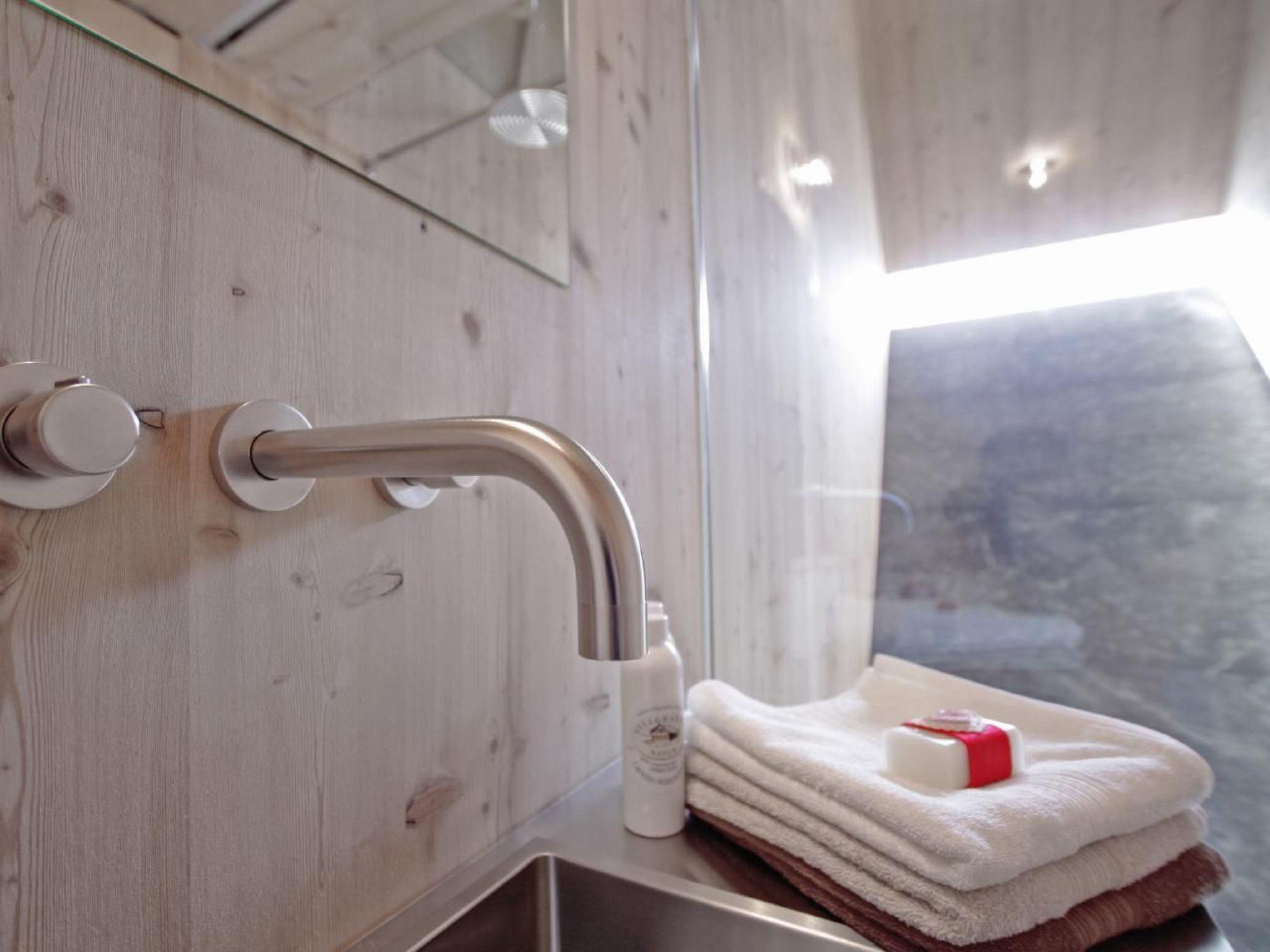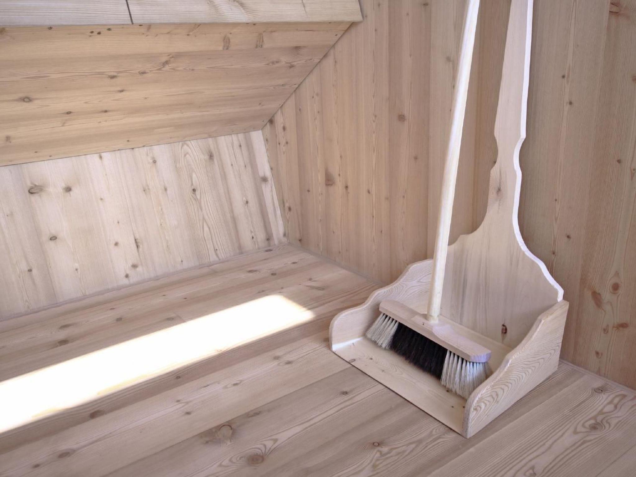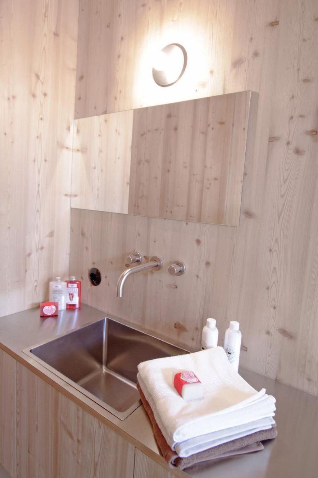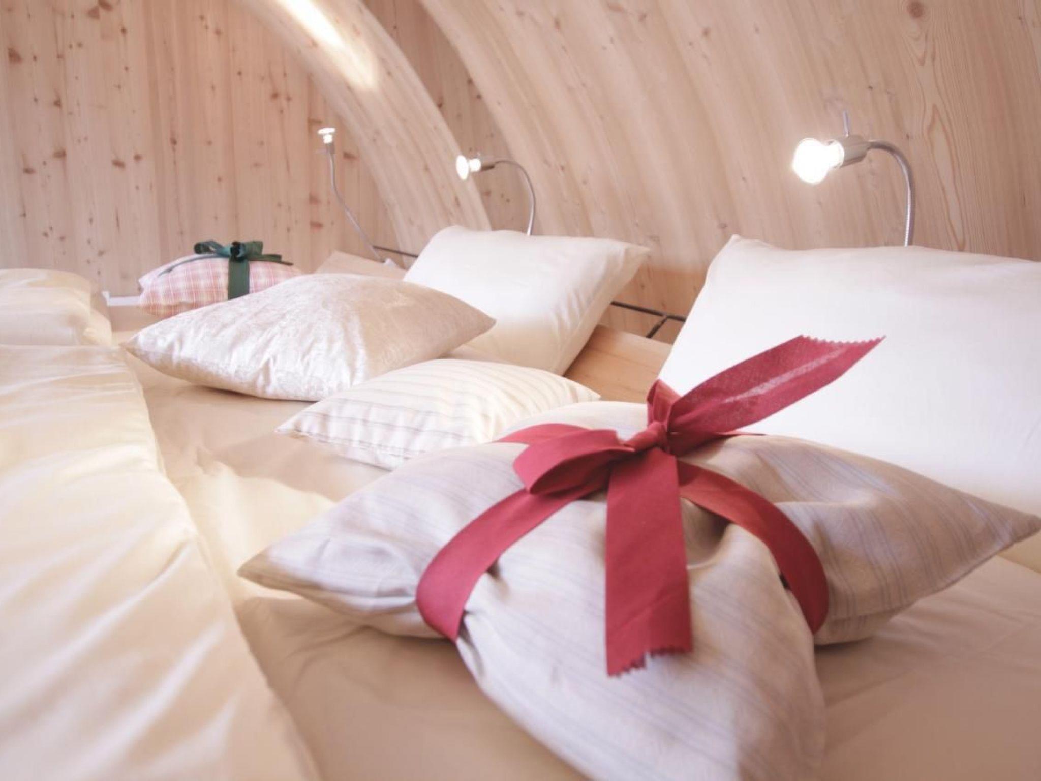 The sleeping areas are located on the open gallery. The beds in the Ufogel are divided into a spacious double bed made of Swiss stone pine and another bunk bed for two people.