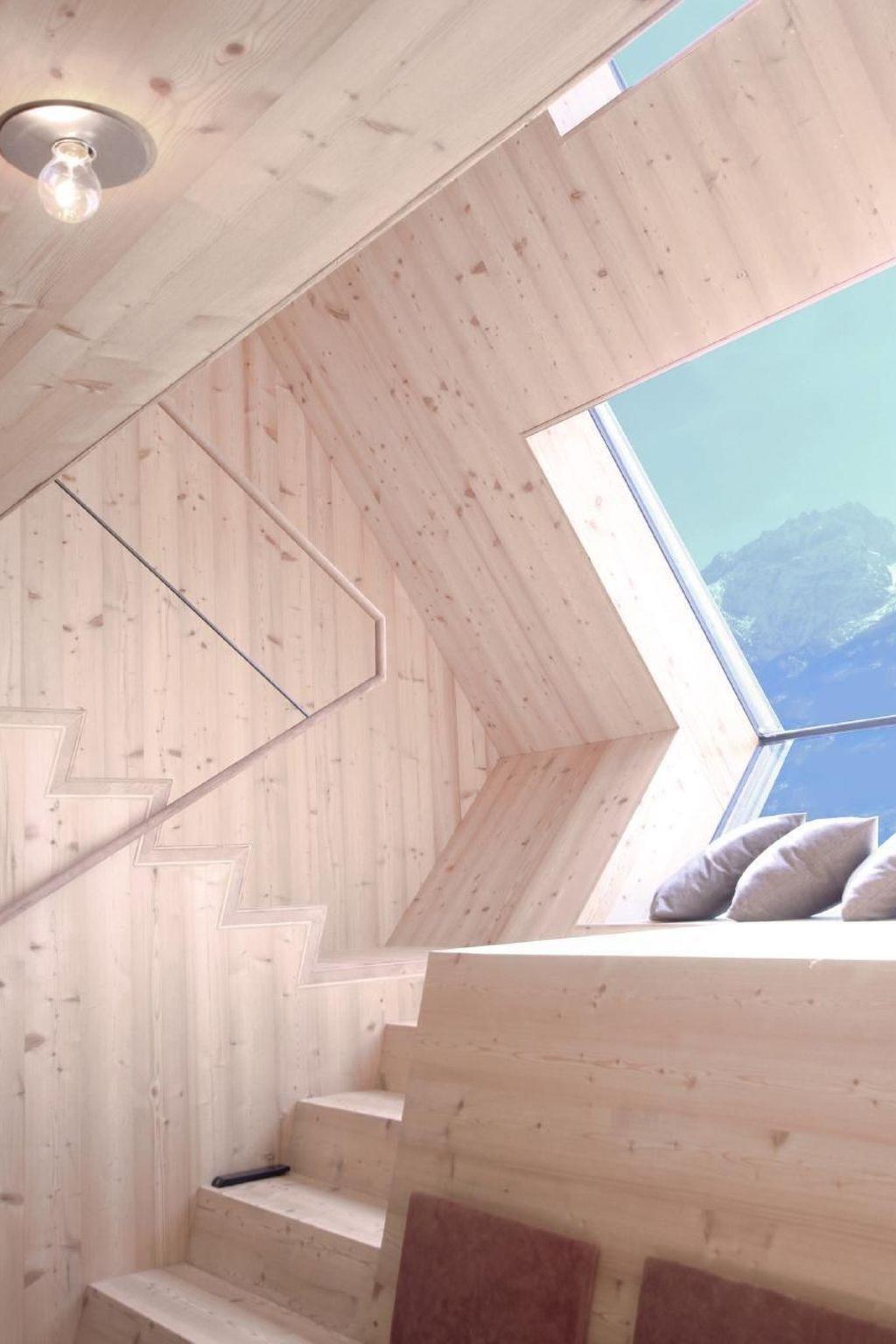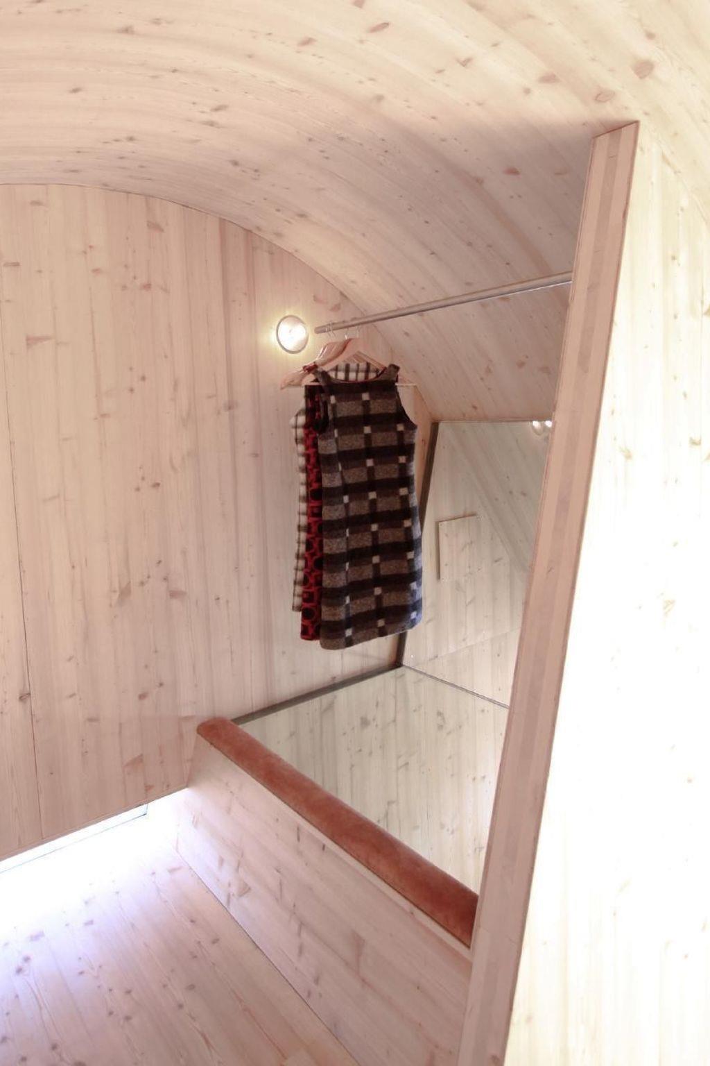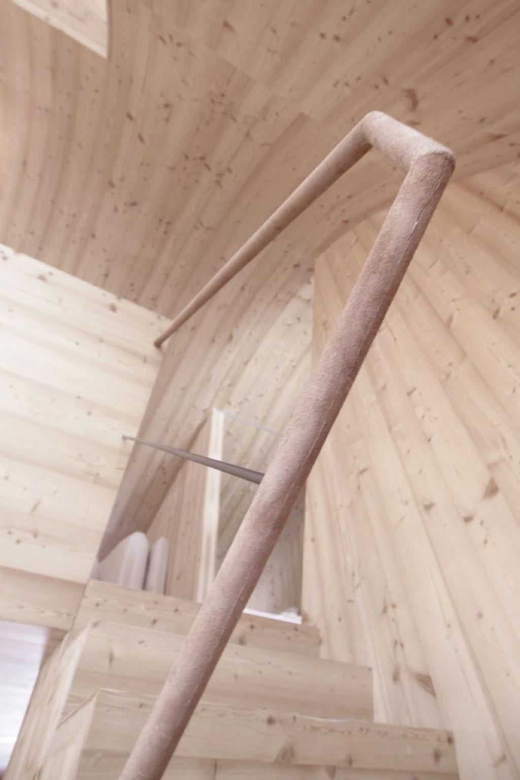 Living in a wooden sculpture: welcome to the Ufogel! This is not an off-the-peg house, but rather a residential sculpture that reveals itself to be a spatial marvel when you enter. A generous, bridge-like entrance is the only connection to the seemingly floating building. When you sit, lie down or share a meal in the Ufogel, two things are always present: the wood and the sky.