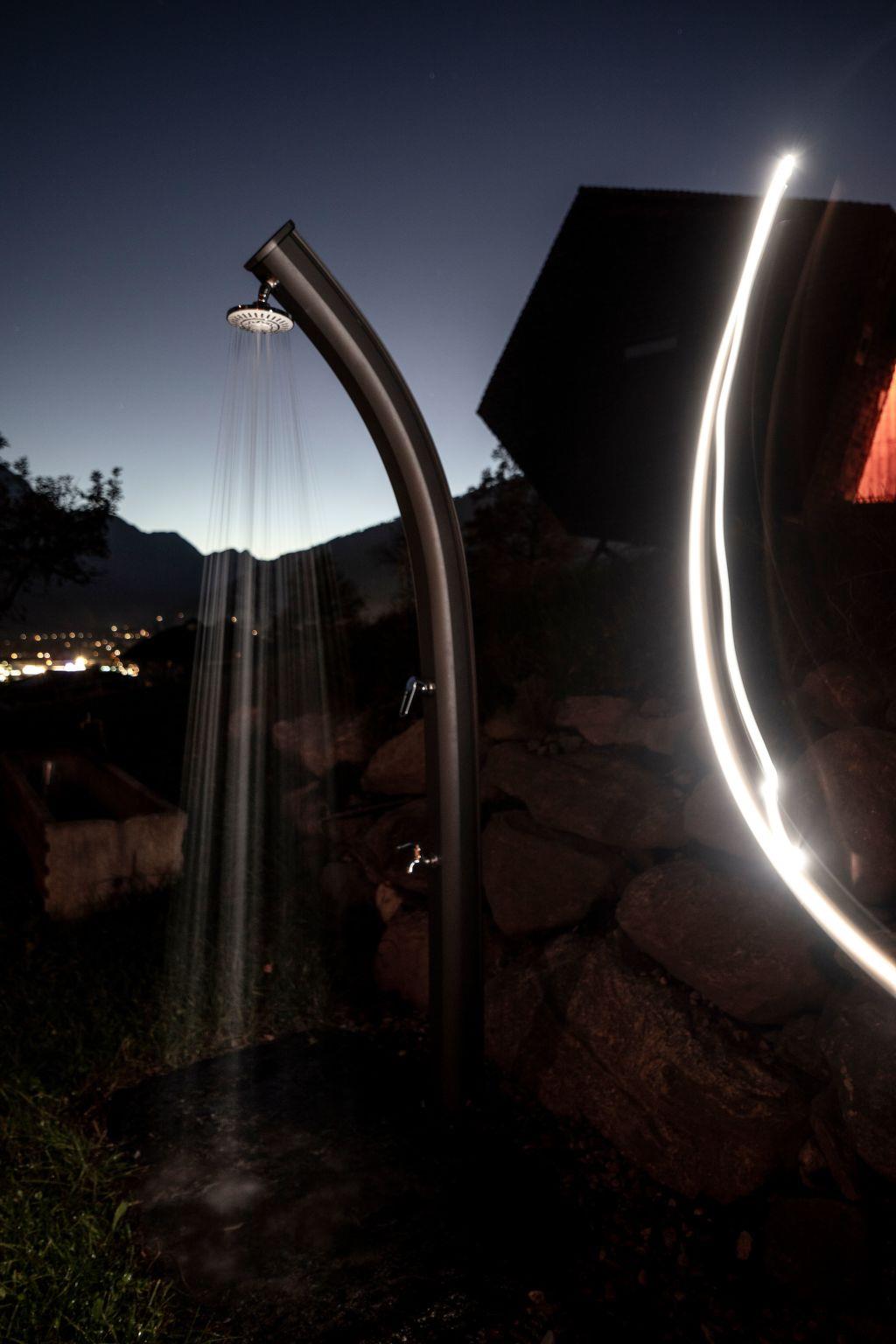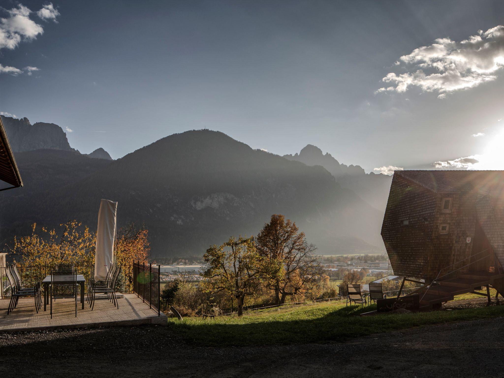 The barrier-free bathroom, with a view of the East Tyrolean mountains, makes showering an experience. The Ufogel is equipped with underfloor heating, which can optionally be supplemented by a wood-burning stove. A fully automatic sun protection system is installed for hot summer days, which can also be operated manually if required. In addition, an air conditioning system ensures a pleasant living climate. For entertainment, guests of the Ufogel have access to satellite TV, a radio with CD player and free Wi-Fi throughout the holiday cabin.