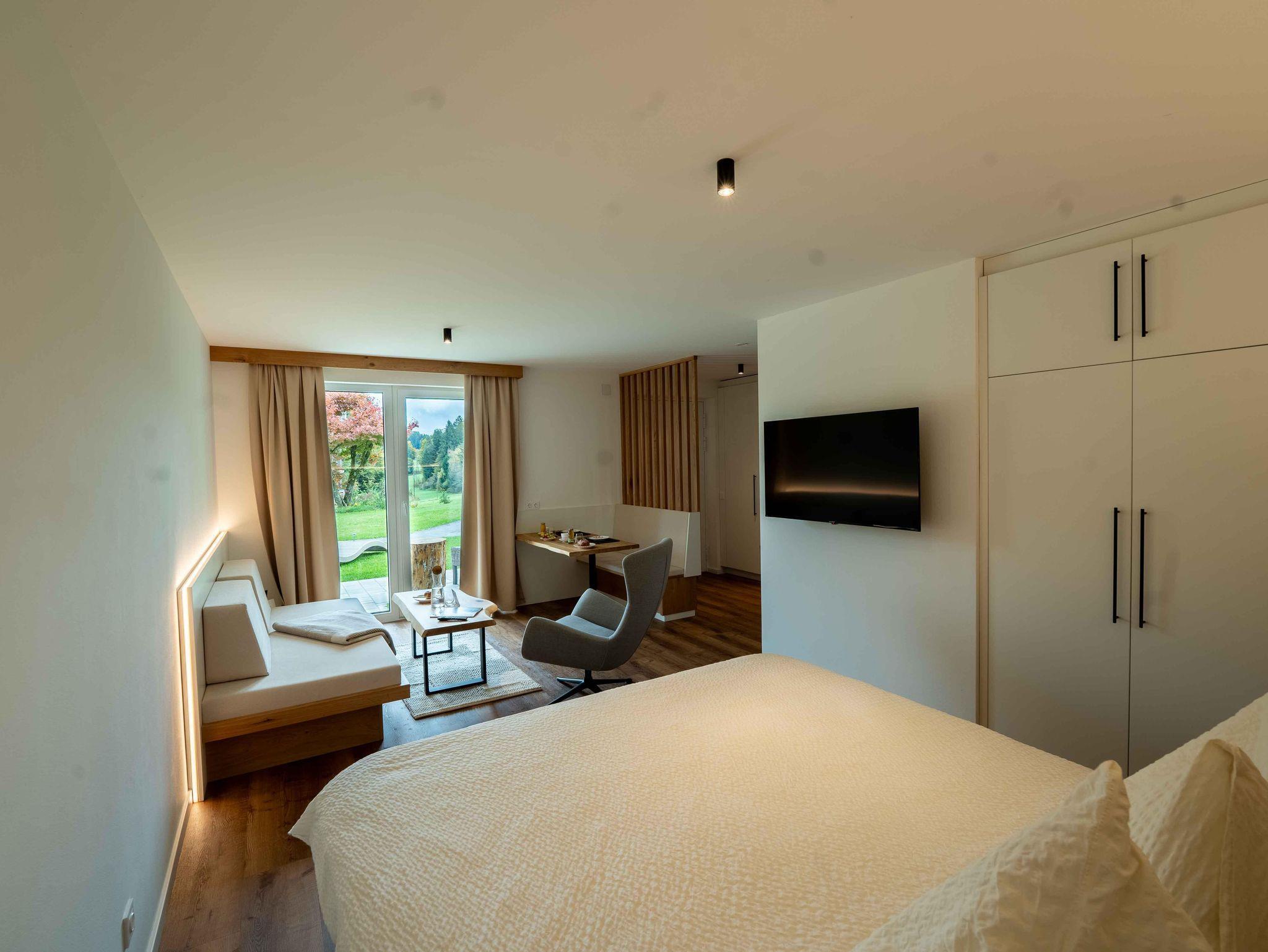 Die Natur Garten Suite Eiche zeichnet sich besonders durch dessen wohlig warmen und doch massiven Charme aus. Ein Rückzugsort in den man die Natur hautnah spürt und erlebt. Genießen Sie Momente der Stille und nehmen sich Zeit für sich und erfreuen sich Ihrer Ungestörtheit.