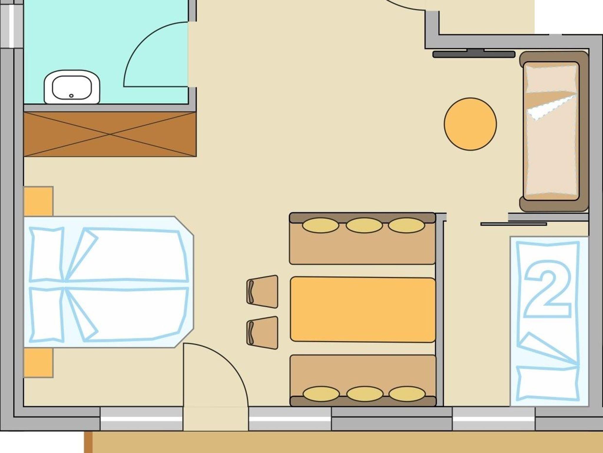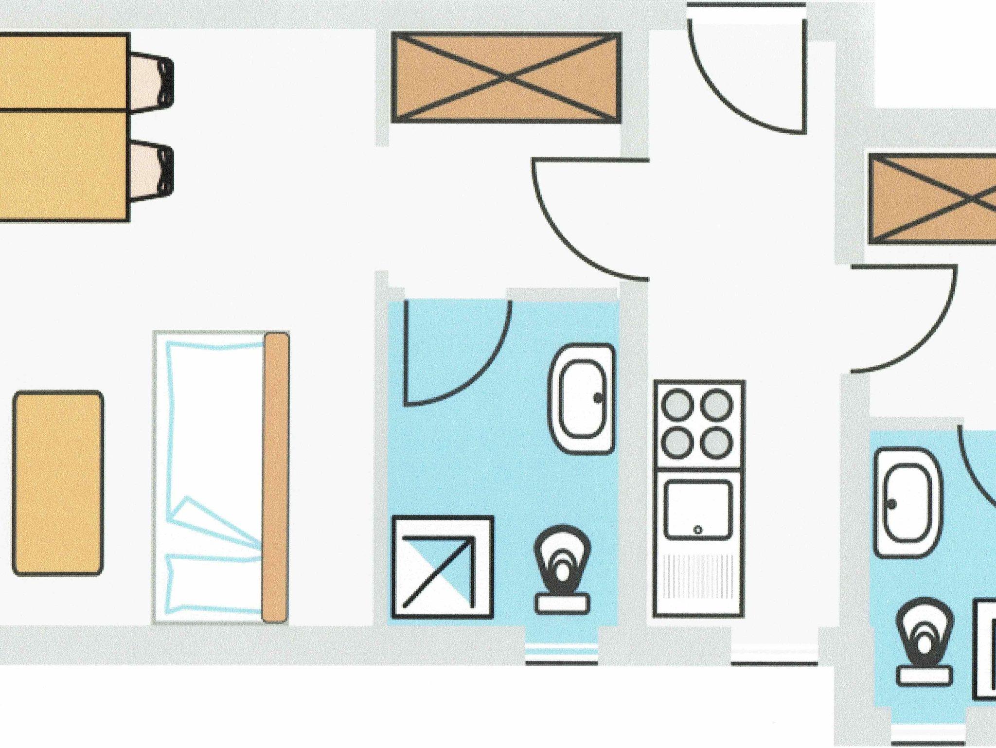 2 Zimmer entweder mit 2 x Doppelbett, Doppelbett und Etagenbett oder Doppelbett und Schlafsofas