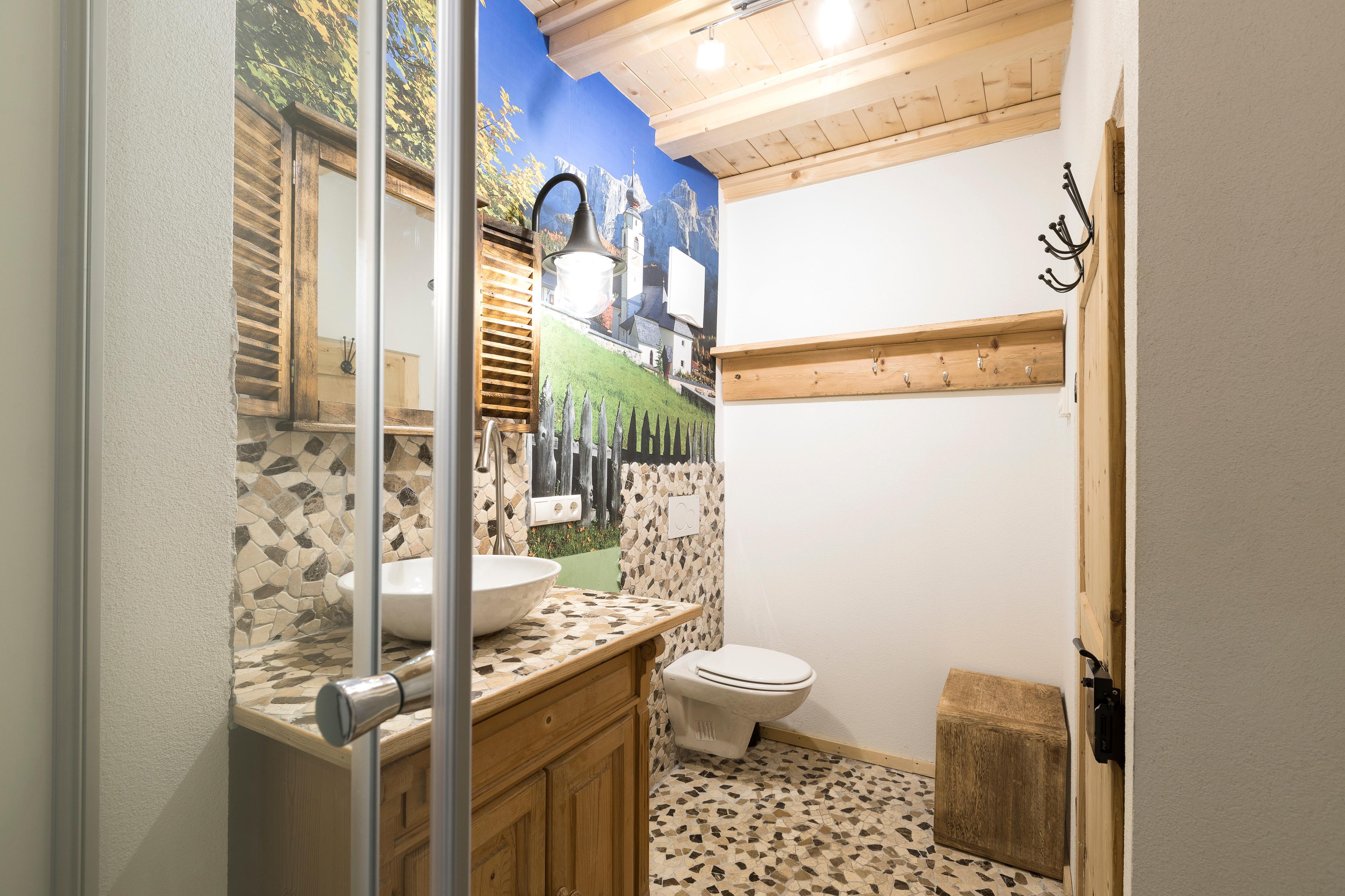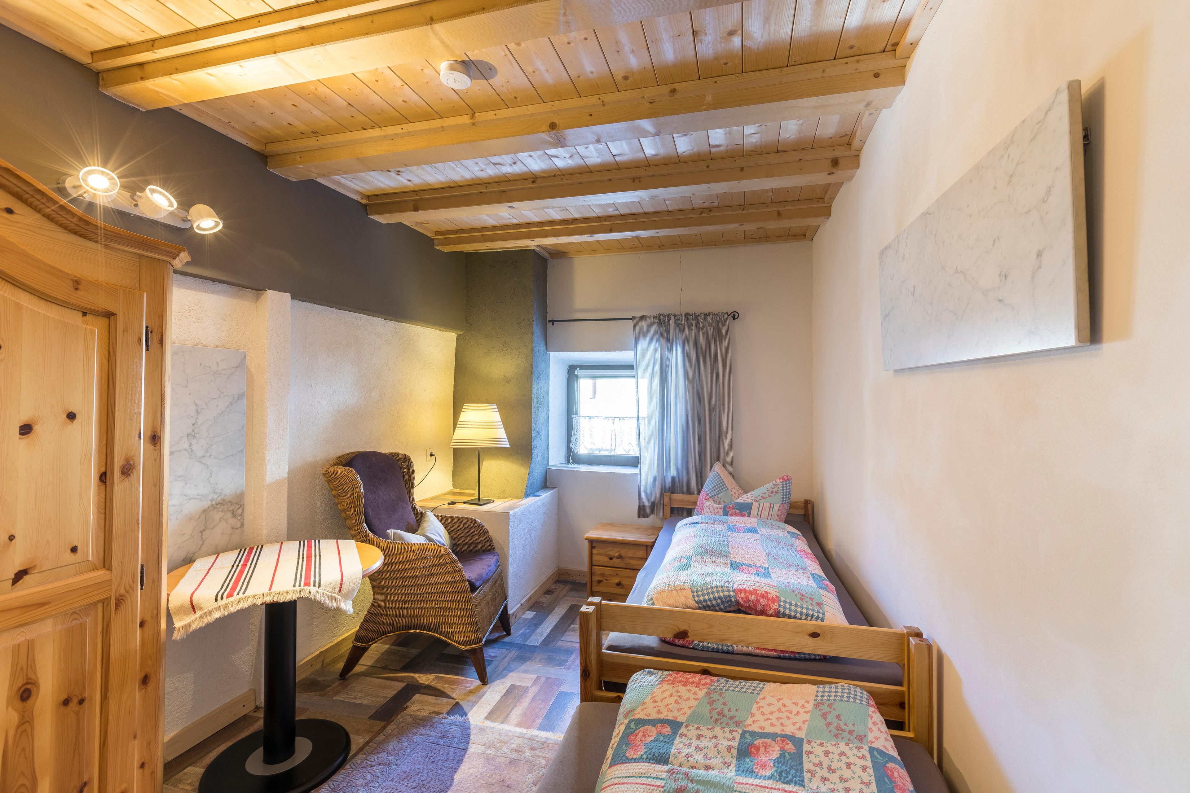 Eine alte Wohnstub z.B. blieb, moderne Elemente wurden hinzugefügt, wie zeitgemäße Bäder und eine moderne Haustechnik – z.B. Infrarotheizung, betrieben mit Strom aus Wasserkraft.