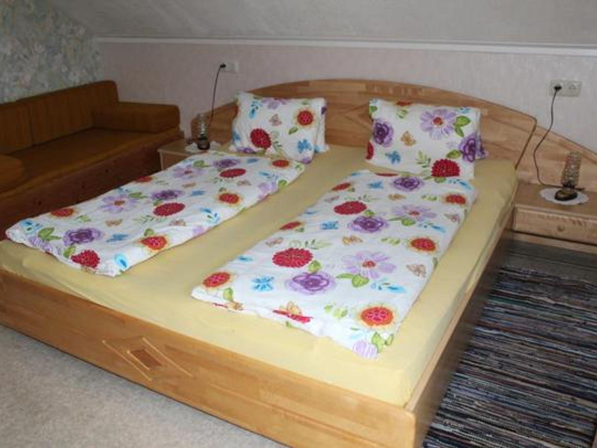 Unsere neue Ferienwohnung TULPE ist eine freundliche, gemütliche Wohnung. Das Doppelbett im Schlafzimmer hat ein freies Fußende, daher auch für große Personen gut geeignet. Das Jugendzimmer hat Etagenbett. Von der Sitzecke in der Wohnküche haben Sie einen herrlichen Ausblick in die Bergwelt der Umgebung. Radio und Sat-TV ist im Wohnraum. Bettwäsche, Dusch-und Handtücher, sowie Geschirrtücher sind vorhanden.
