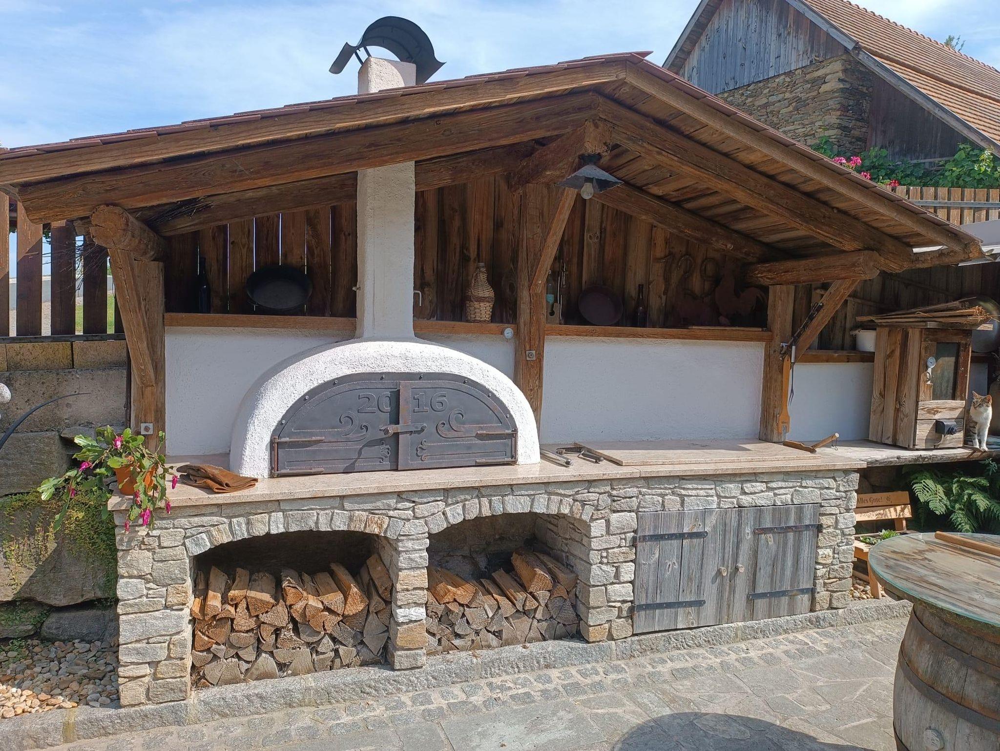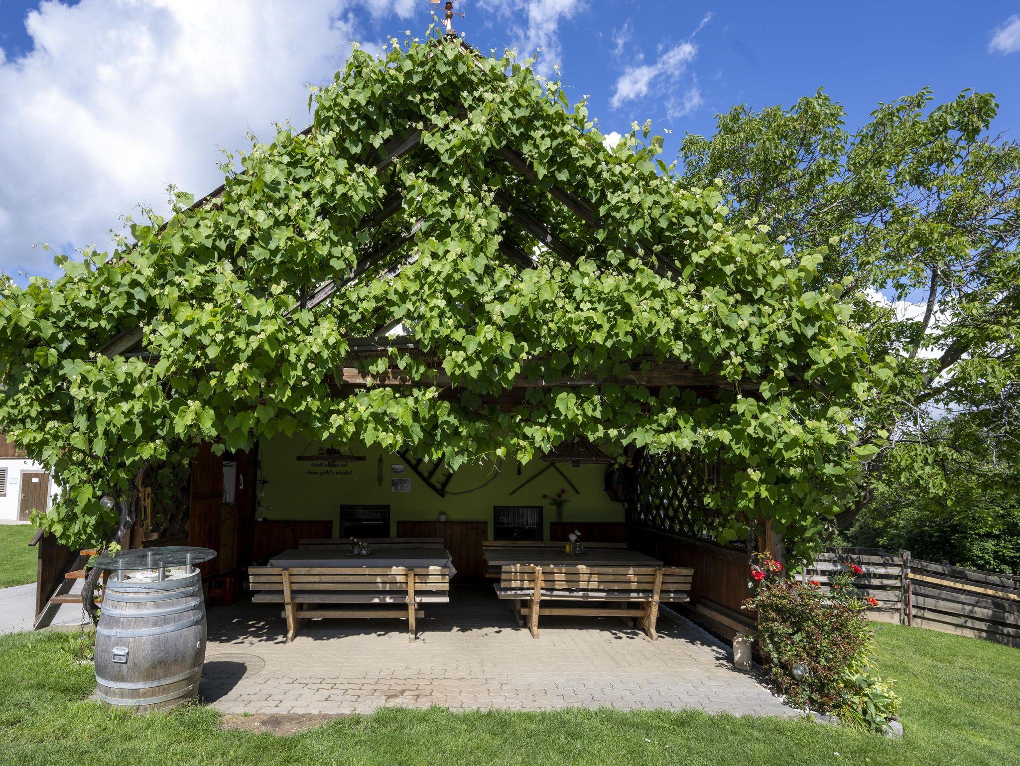 Hausgemachte Produkte können unter der gemütlichen Laube oder im Weinkeller verkostet werden.