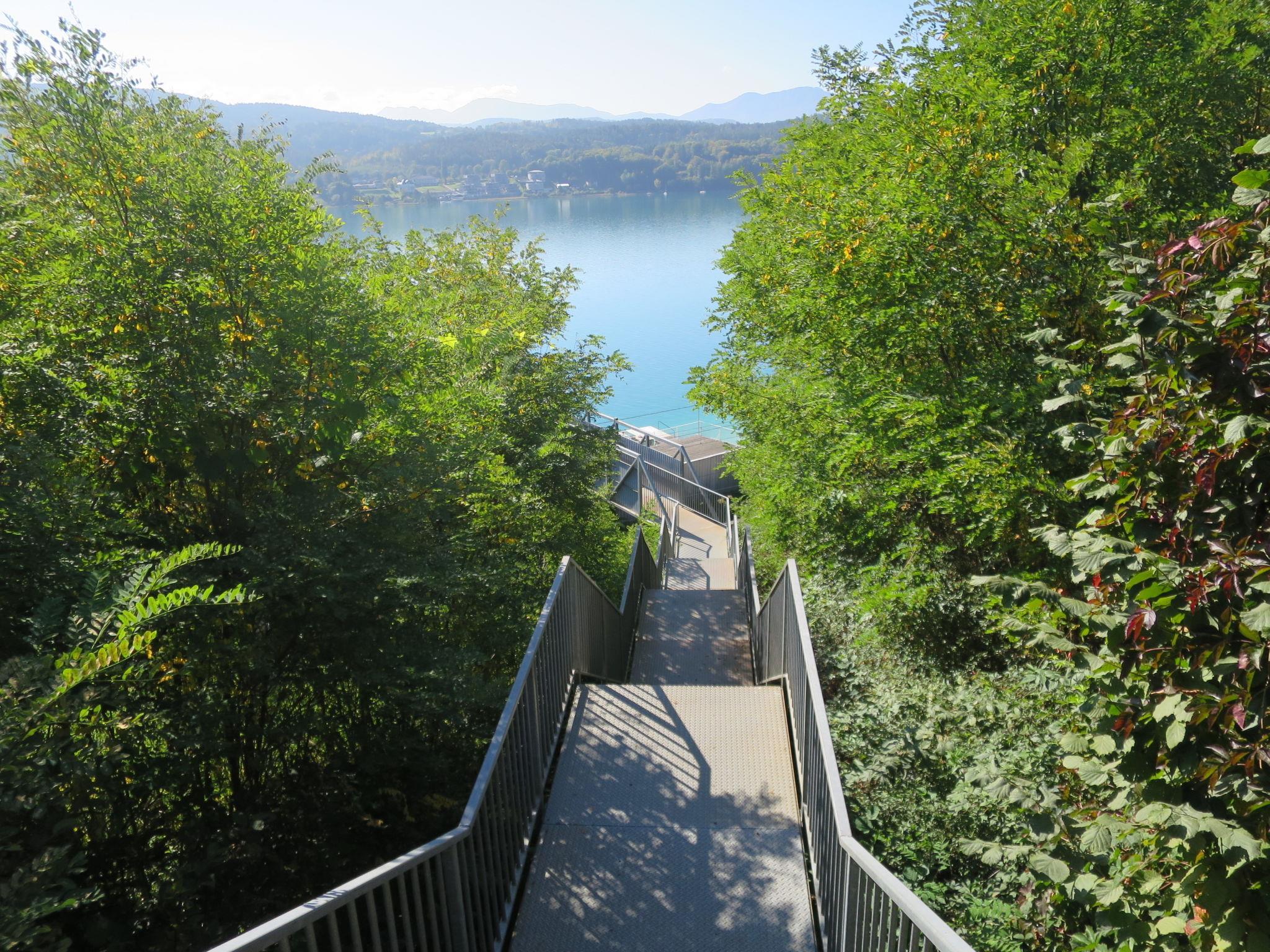 Töschling 2 km from Pörtschach: Residence "Appartement Vinzek", 4 storeys. 24 apartments in the residence. In the district of Töschling, in an elevated position, 250 m from the lake, direct access to the beach, south facing position. For shared use: lawn for sunbathing. Private beach, parking at the house. Supermarket 700 m, restaurant 400 m, bus stop "Töschling" 300 m, railway station "Töschling" 400 m. Nearby attractions: Minimundus 14 km, Pyramidenkogel 24 km, Reptilienzoo Happ 14 km. Well-known ski regions can easily be reached: Gerlitzen 35 km. Well-known lakes can easily be reached: Wörthersee 250 m. Please note: railway line 150 m from the property.