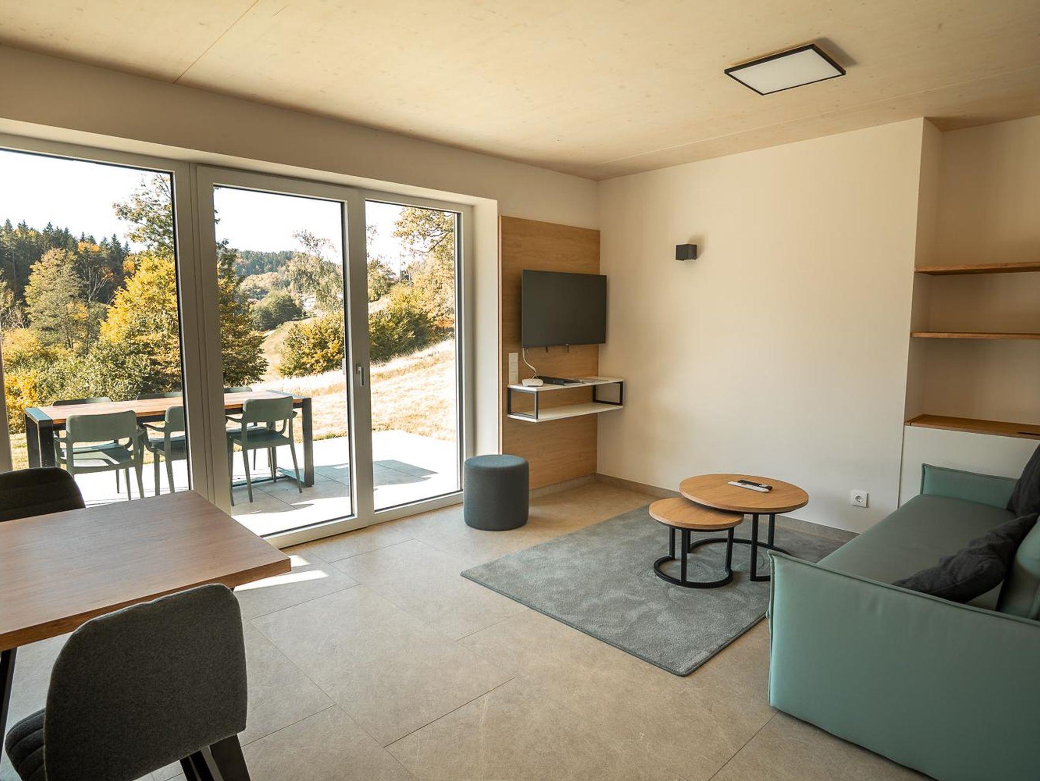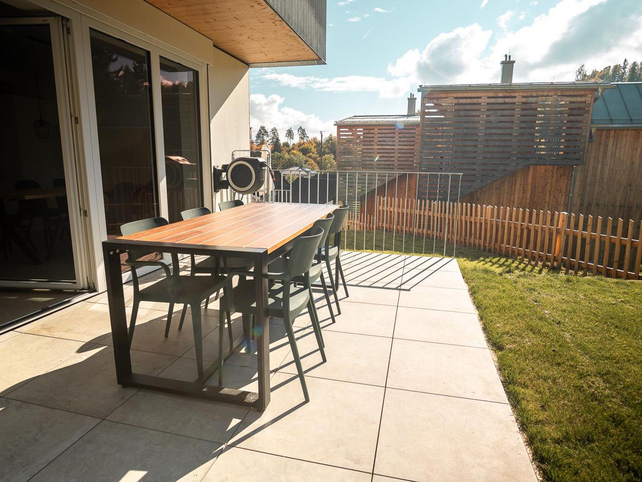Gemütliche Holz-Lodges verbunden mit moderner, hochwertiger Ausstattung; ruhig mitten im Grünen und gleichzeitig seid ihr in wenigen Minuten direkt am Wörthersee. Auf 60m² Wohnfläche erwartet euch ein lichtdurchfluteter Wohn-Essbereich mit moderner, voll ausgestatteter Küche – ideal für gemeinsame Kochabende mit Familie oder Freunden. Die Küche lässt keine Wünsche offen. Zwei gemütliche Schlafzimmer – eines mit Doppelbett, das andere mit einem praktischen Hochbett – sowie eine bequeme Schlafcouch im Wohnzimmer bieten Platz für bis zu sechs Personen. An sonnigen Tagen genießt ihr eure Mahlzeiten auf eurer eigenen Terrasse mit kleinem Garten. Und wenn der Tag langsam ausklingt, wartet schon ein besonderes Highlight auf euch: die 50 qm große, private Dachterrasse mit gemütlichen Loungemöbeln. Hier seid ihr ungestört, vor Blicken geschützt – und der Sternenhimmel gehört ganz euch.