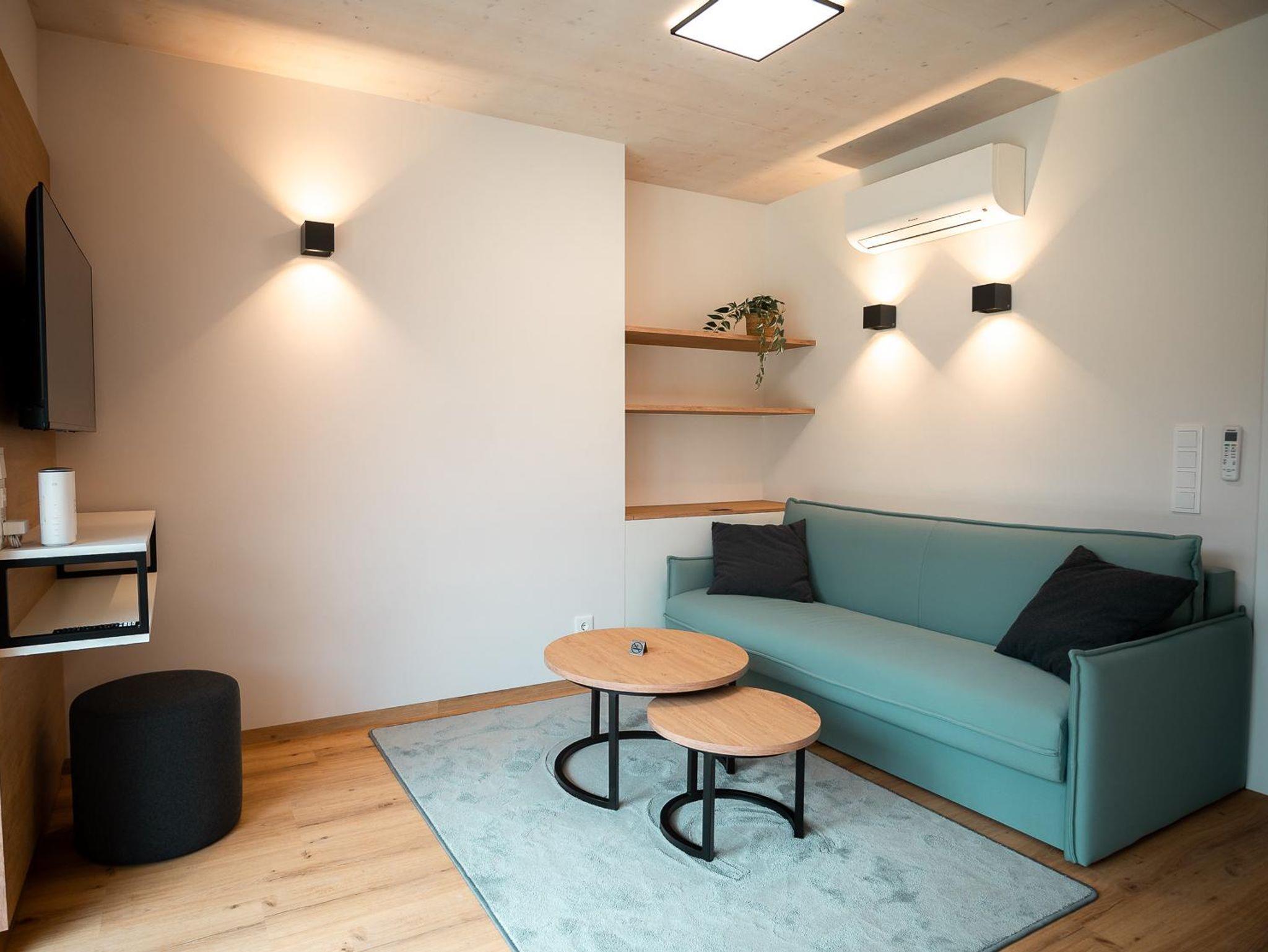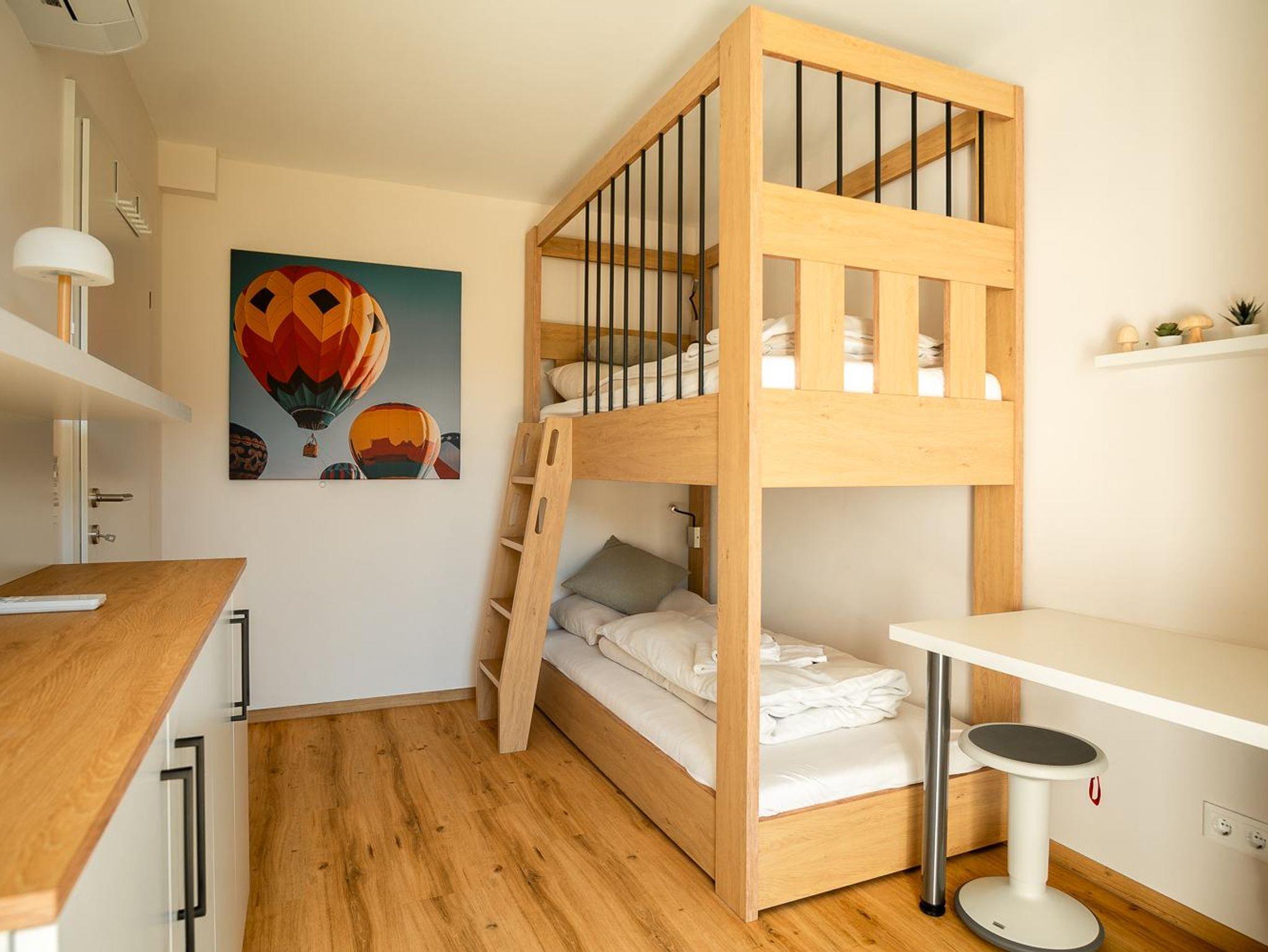 Gemütliche Holz-Lodges verbunden mit moderner, hochwertiger Ausstattung; ruhig mitten im Grünen und gleichzeitig seid ihr in wenigen Minuten direkt am Wörthersee. Auf 60m² Wohnfläche erwartet euch ein lichtdurchfluteter Wohn-Essbereich mit moderner, voll ausgestatteter Küche – ideal für gemeinsame Kochabende mit Familie oder Freunden. Die Küche lässt keine Wünsche offen. Zwei gemütliche Schlafzimmer – eines mit Doppelbett, das andere mit einem praktischen Hochbett – sowie eine bequeme Schlafcouch im Wohnzimmer bieten Platz für bis zu sechs Personen. An sonnigen Tagen genießt ihr eure Mahlzeiten auf eurer eigenen Terrasse mit kleinem Garten. Und wenn der Tag langsam ausklingt, wartet schon ein besonderes Highlight auf euch: die 50 qm große, private Dachterrasse mit gemütlichen Loungemöbeln. Hier seid ihr ungestört, vor Blicken geschützt – und der Sternenhimmel gehört ganz euch.