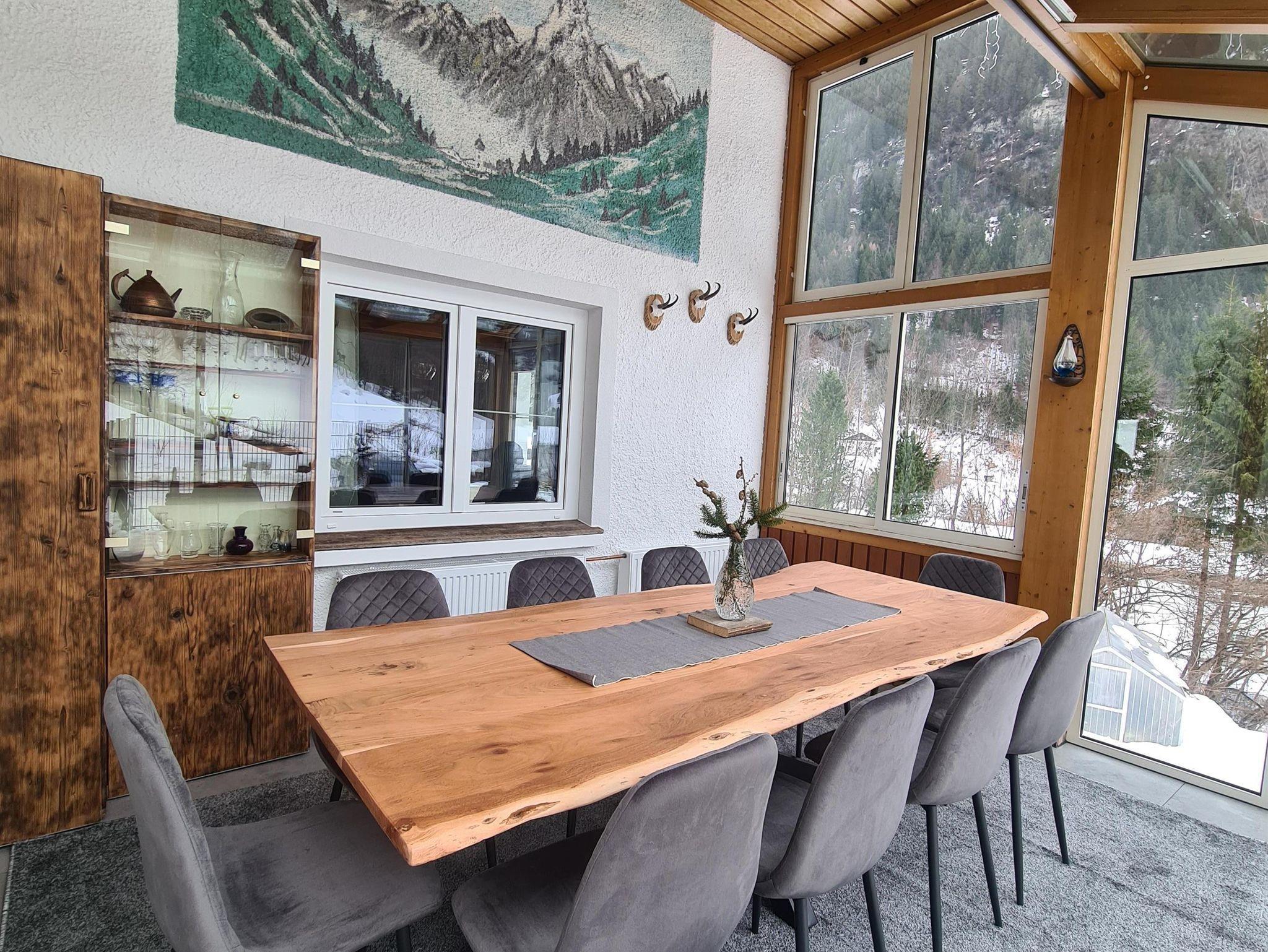 Selbstversorgerhaus für 10 Personen mit Montafoner Zirbenstube und einem gemütlichen Wintergarten. Vollausgestattete Küche mit Induktionskochfeld, Geschirrspüler, Backrohr, Mikrowelle, Kühlschrank, Kaffevollautomat,...