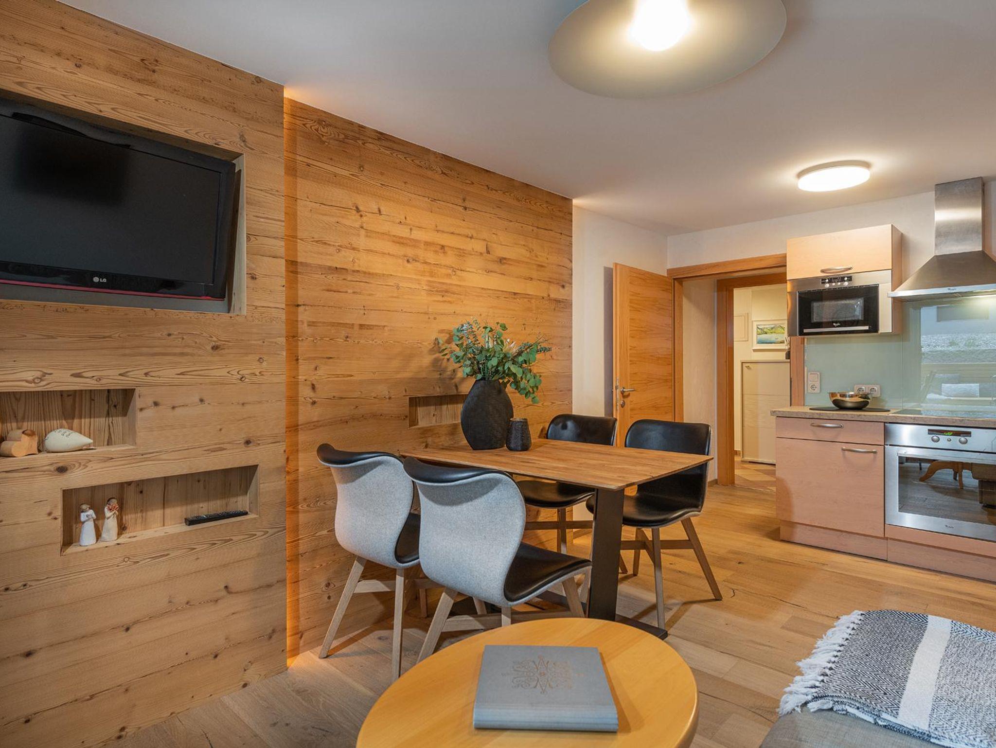 • gemütliche Wohnküche mit Wohn- und Essecke, komplett ausgestattete Küche mit 4-Platten-Cerankochfeld, Mikrowelle, Backofen, Kühlschrank mit Gefrierfach, Filterkaffeemaschine (auf Wunsch Nespresso verfügbar), Toaster, Wasserkocher, Geschirr, Besteck und Kochutensilien