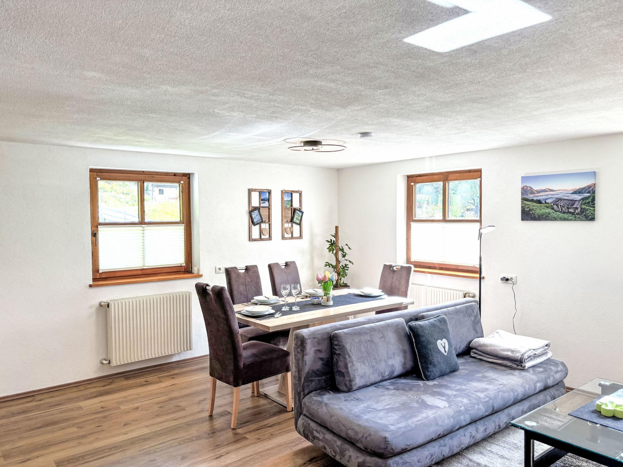 "3 Zimmer", 3-room apartment 65 m2 on 1st floor. Modern and cosy furnishings: living/sleeping room with 1 sofabed and TV. 1 double bedroom. 1 children's room with 2 beds. Open kitchen (oven, dishwasher, 4 ceramic glass hob hotplates, toaster, kettle, microwave, electric coffee machine). Shower/WC. Wood heating. Beautiful view of the mountains. Facilities: Internet (WiFi, free). Please note: non-smokers only. Smoke alarm.