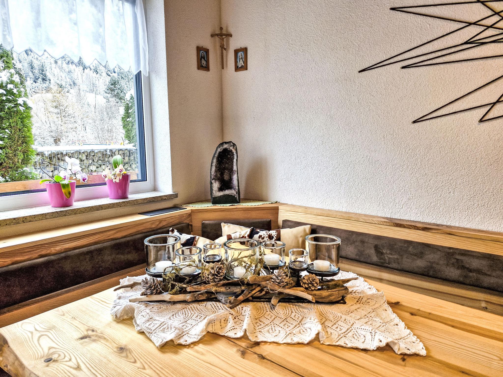 "Haus 201", 4-room house 120 m2 on 2 levels. Comfortable and tasteful furnishings: living/sleeping room with 1 double sofabed and TV (flat screen). Exit to the terrace. Open kitchen (oven, dishwasher, 4 ceramic glass hob hotplates, kettle, microwave, freezer, electric coffee machine) with dining table. Sep. WC. Wood heating. Upper floor: 2 double bedrooms. 1 room with 2 beds. Bath/shower/WC. Natural stone floors. Large balcony, south facing position terrace. Terrace furniture, balcony furniture. Beautiful view of the mountains. Facilities: Internet (WiFi, free). Please note: non-smoking house. Fire extinguisher.