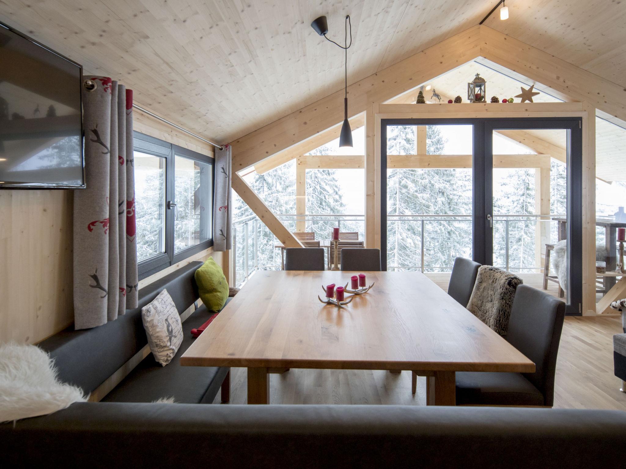 "Superior 10 Sauna u.Sprudelwanne innen", 5-room chalet 120 m2. Comfortable and tasteful furnishings: living/dining room with dining nook and satellite TV (flat screen). 3 double bedrooms. 1 room with 2 x 2 bunk beds. Open kitchen (oven, dishwasher, 4 ceramic glass hob hotplates, toaster, kettle, microwave, electric coffee machine). Bath/WC, 2 showers/WC, 3 sep. WC's, hydro massage bath, Sauna. Balcony terrace. Terrace furniture. Very beautiful view of the mountains. Facilities: hair dryer. Internet (WiFi, free). Please note: non-smokers only.