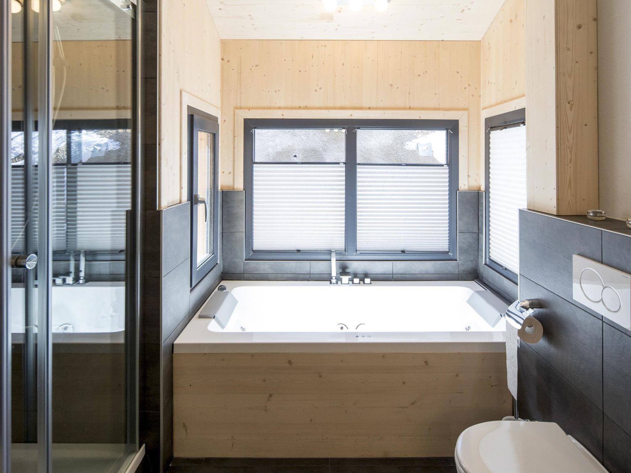 "Superior 12 Sauna&Sprudelwanne innen", 5-room chalet 120 m2. Comfortable and tasteful furnishings: living/dining room with dining nook and satellite TV (flat screen). 3 double bedrooms. 1 room with 1 bed and 1 x 2 bunk beds. Open kitchen (oven, dishwasher, 4 ceramic glass hob hotplates, toaster, kettle, microwave, electric coffee machine). Bath/WC, 3 showers/WC, 4 sep. WC's, hydro massage bath, Sauna. Balcony terrace. Terrace furniture. Beautiful view of the ski run. Facilities: hair dryer. Internet (WiFi, free). Please note: non-smokers only. The property is one of a type of property or apartment.