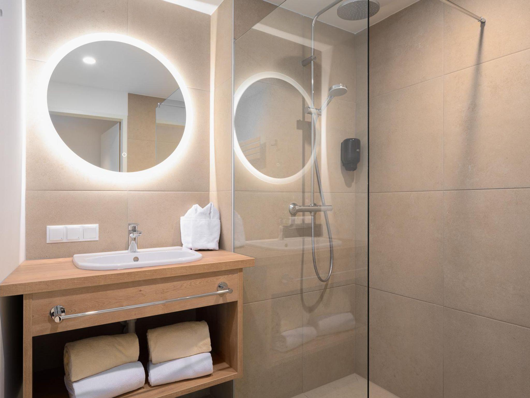 The apartments are beautiful and clean, perfectly equipped. There is a ski storage room in the house with boots heater, very useful. Parking garage is under the building, very convenient to reach the room, parking spots are spacious.