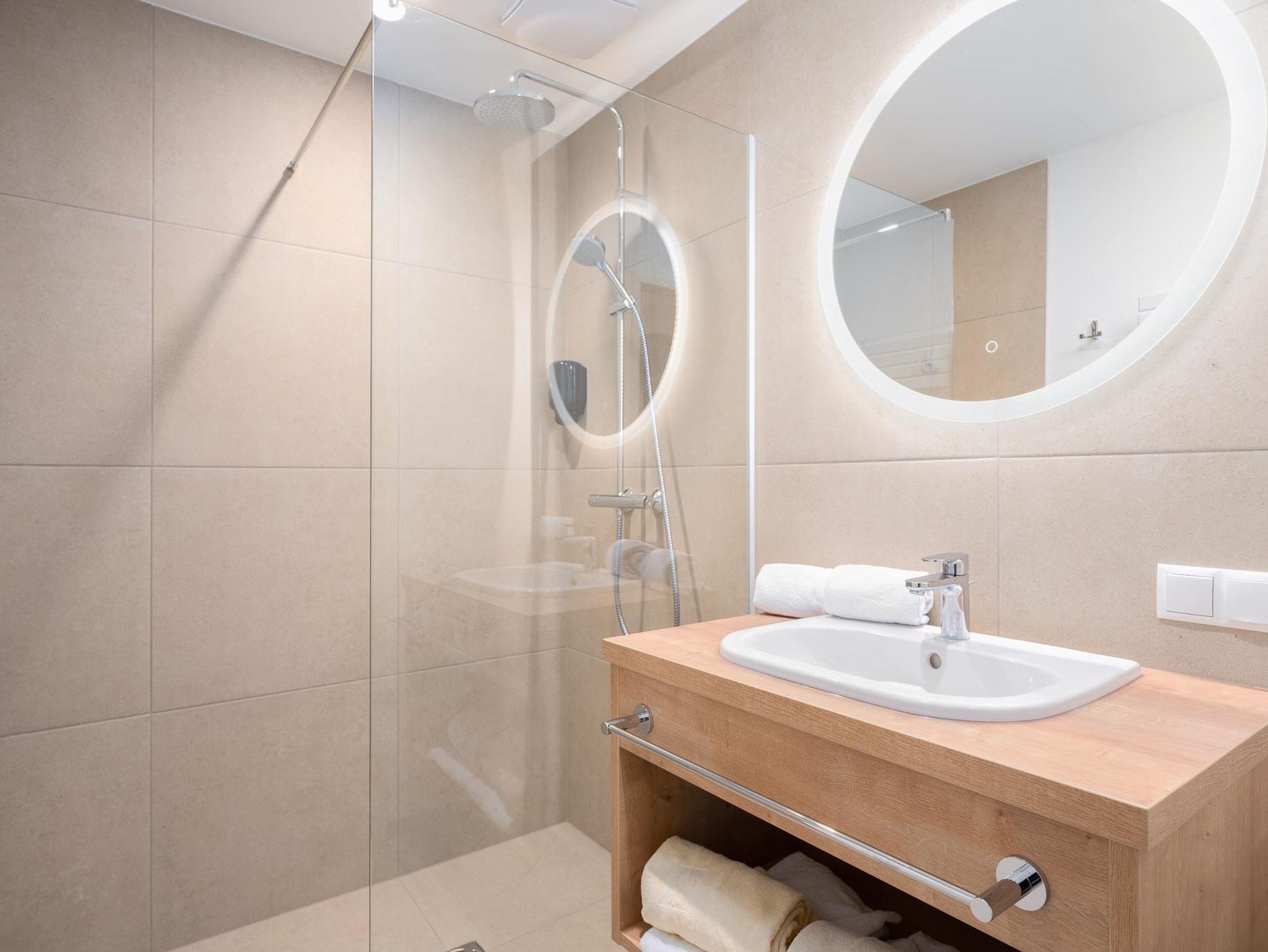 The apartments are beautiful and clean, perfectly equipped. There is a ski storage room in the house with boots heater, very useful. Parking garage is under the building, very convenient to reach the room, parking spots are spacious.