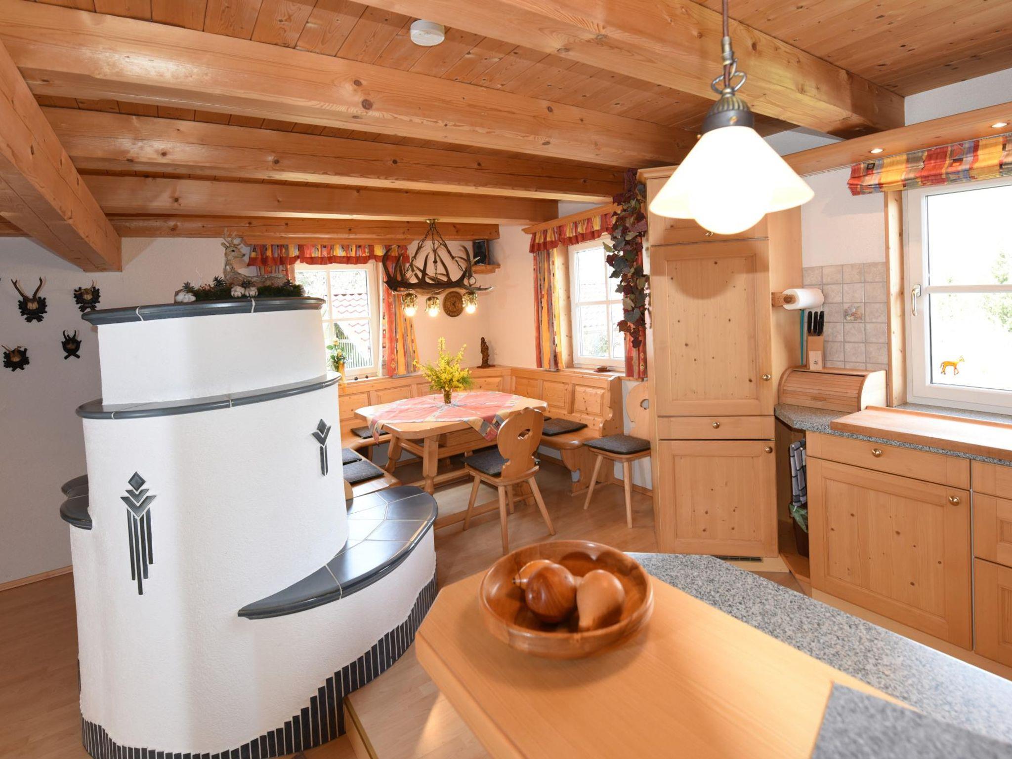 Das mit viel Holz ausgestattete ****Appartement für 2 - 6 (8) Personen bietet Ihnen einen Wintergarten mit Skischuhtrockner. Eine voll ausgestattete Küche mit E-Herd/Backrohr, Geschirrspüler, Kühlschrank/Eisfach, Wasserkocher, Toaster, Brotschneidemaschine. Einen Wohnbereich mit SAT-TV, Kachelofen (zentralbeheizt), Spielecke, Hifi-Anlage mit CD-Player. 1 WC im Erdgeschoß und ein Bad mit WC im 1. Stock mit Fußbodenheizung, Handtuchtrockner, Dusche, Fön, ausreichend Handtücher und eine Waschmaschine. Zwei Doppelbettschlafzimmer, wobei 1 Zimmer einen Balkon mit herrlichem Panoramablick bietet, sowie ein Etagenbettzimmer.