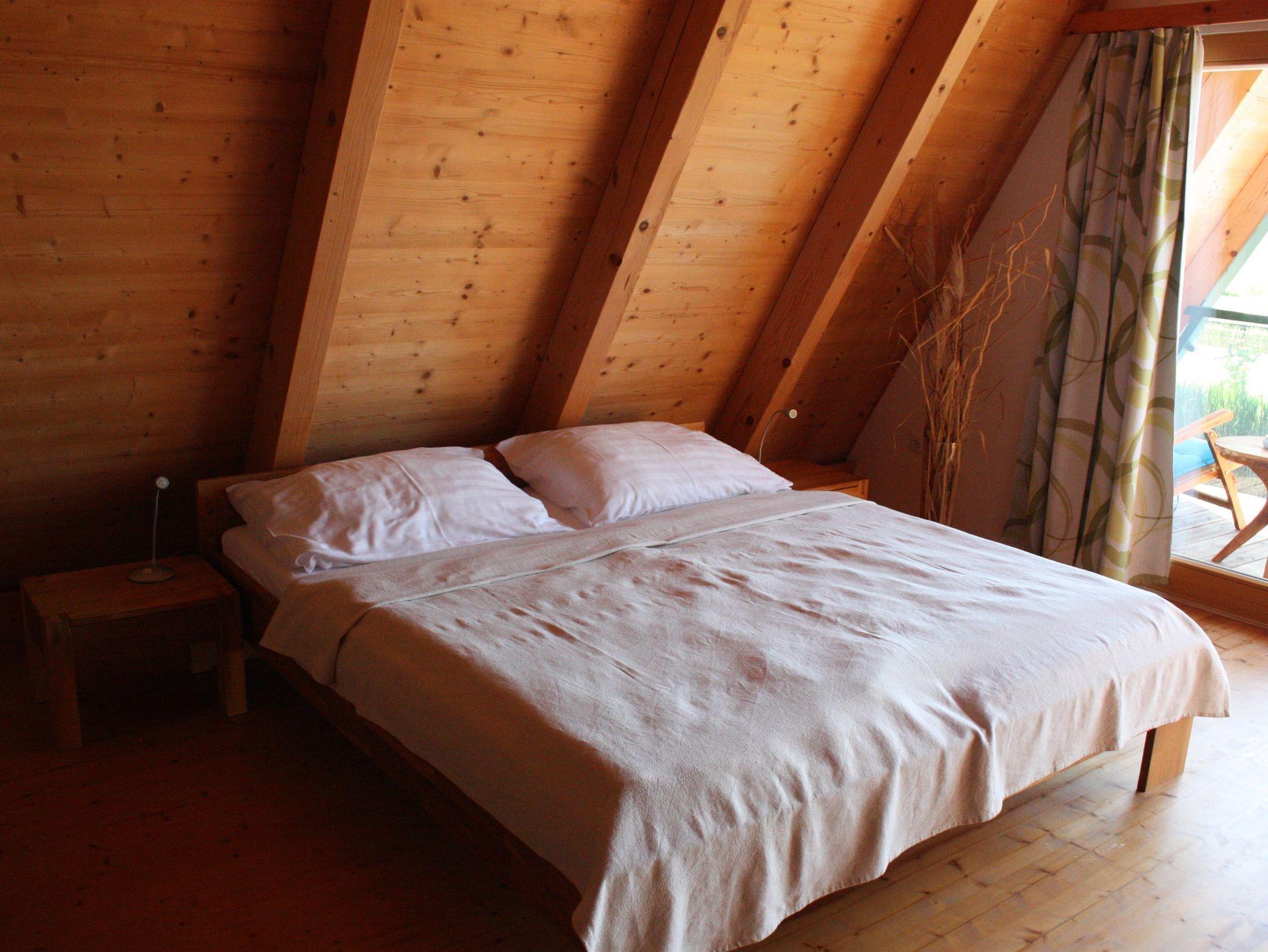 Angepasst an die Natur sind die Ferienhäuser aus reinen Naturmaterialien gebaut. Innen mit Bio-Vollholzmöbeln und mit einem schützenden Schilfdach, sind Sie der burgenländischen Natur und Tradition hautnah.