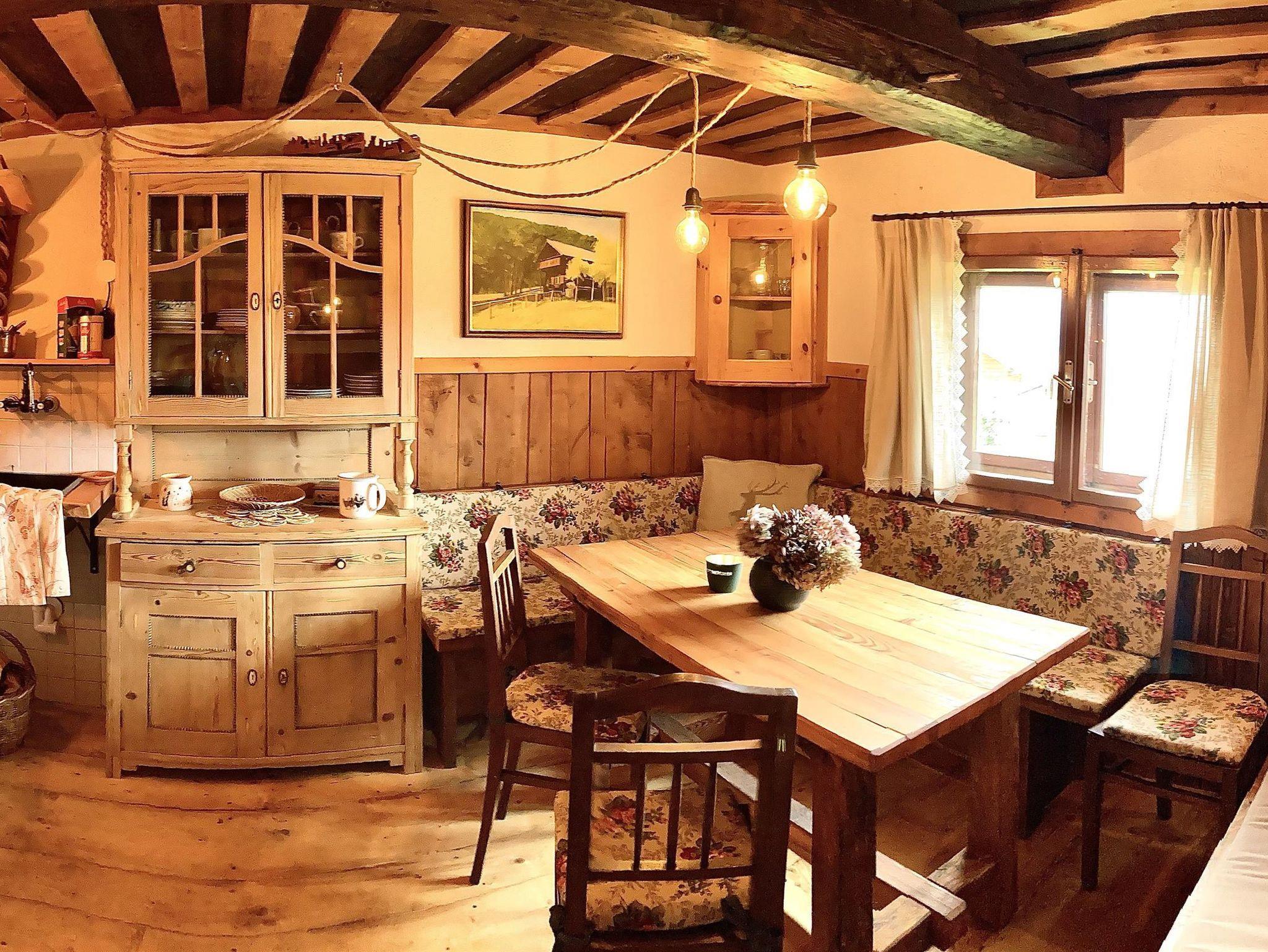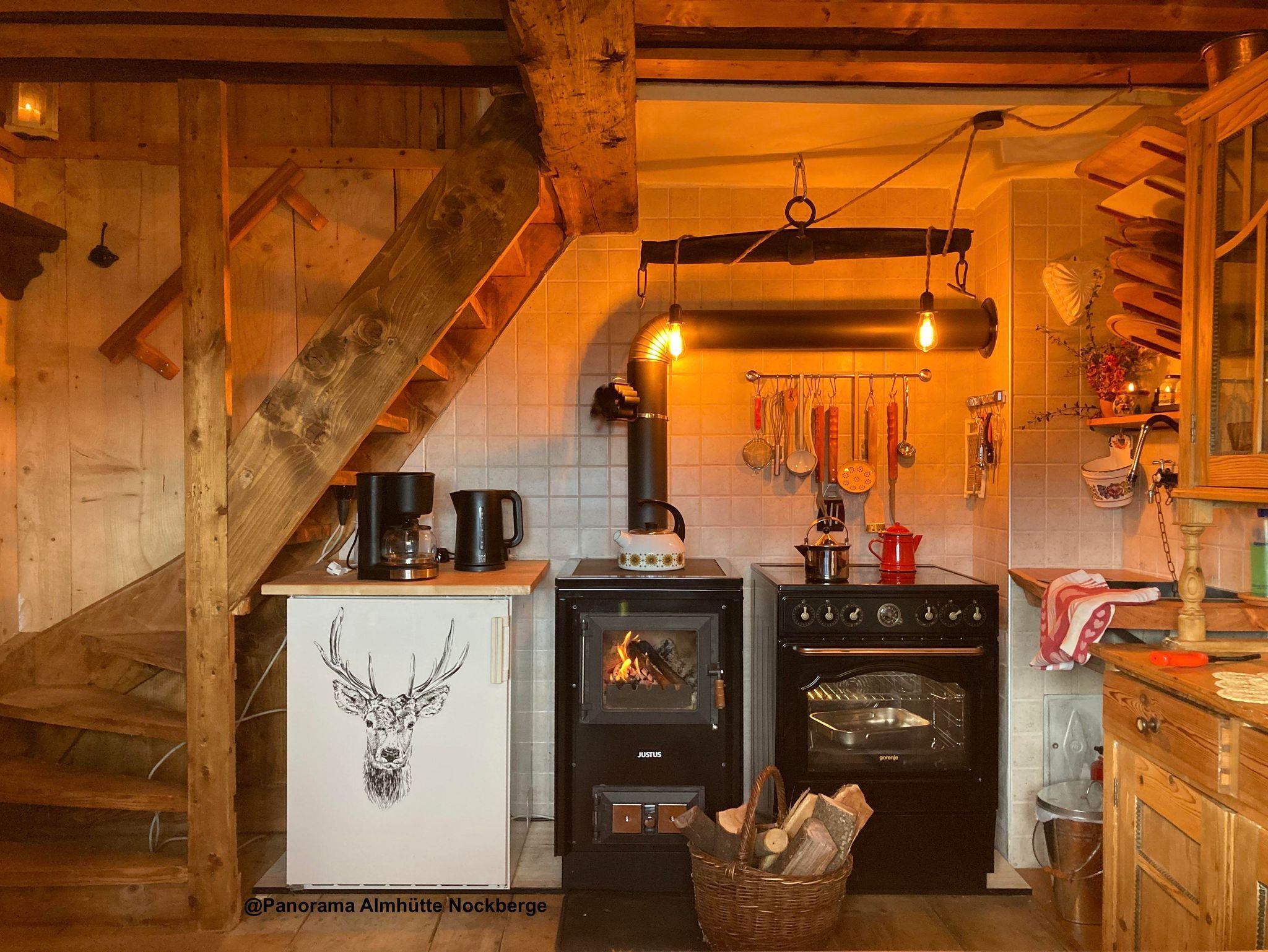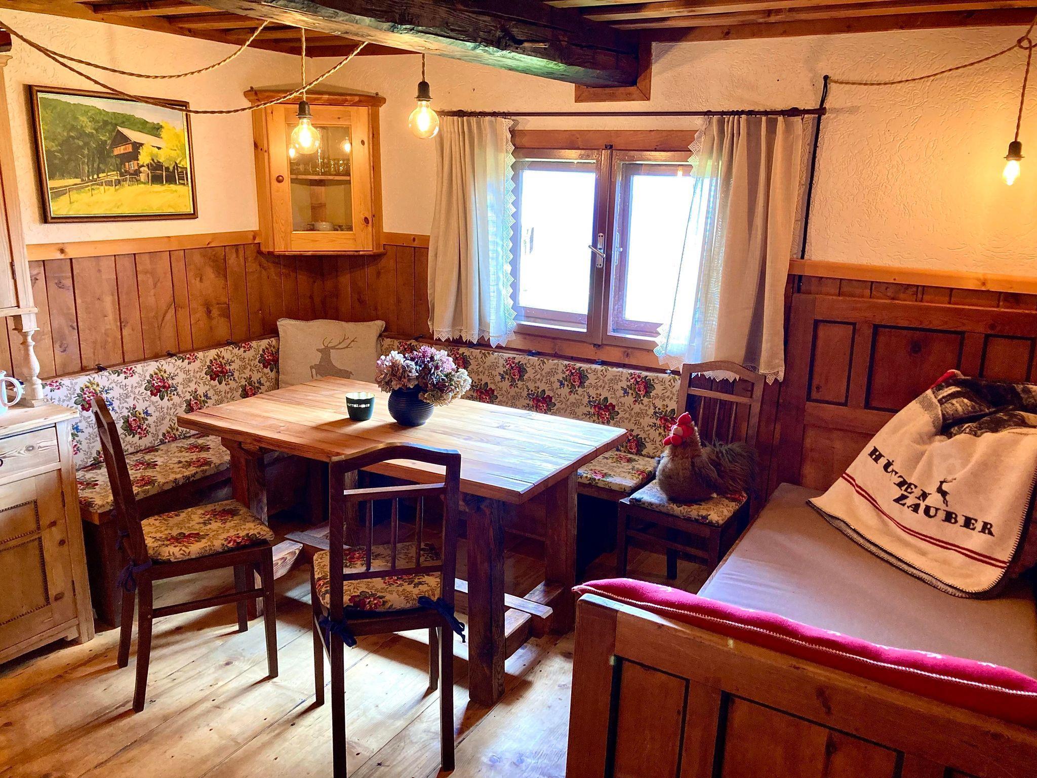 In der gemütlichen Bauernstube knistert ein behagliches Feuer im Holzofen. Neben der großzügigen Eckbank mit selbstgebautem Esstisch lädt das fast 100 Jahre alte Bett vom ehemaligen Großglockner-Haus zum Chillen ein.