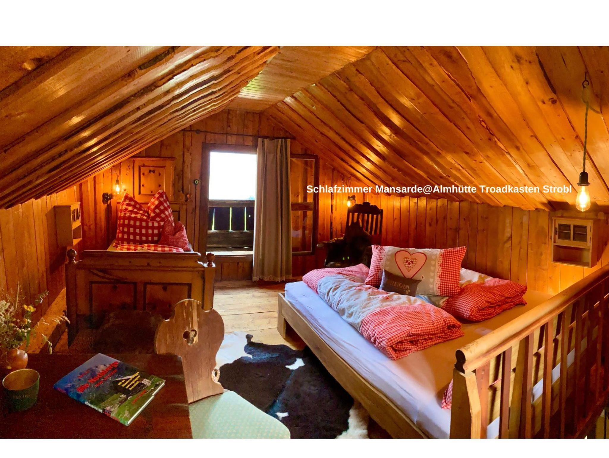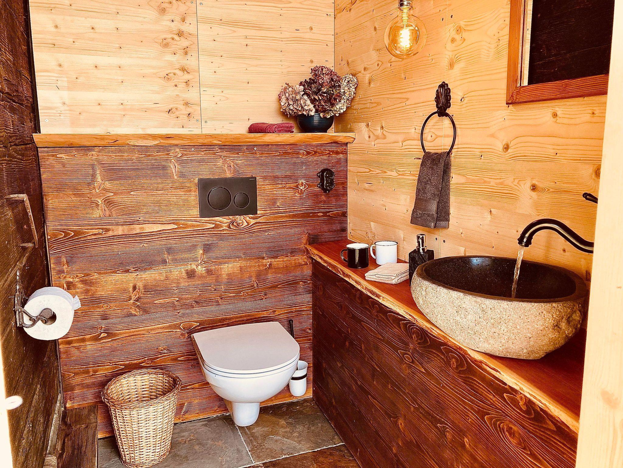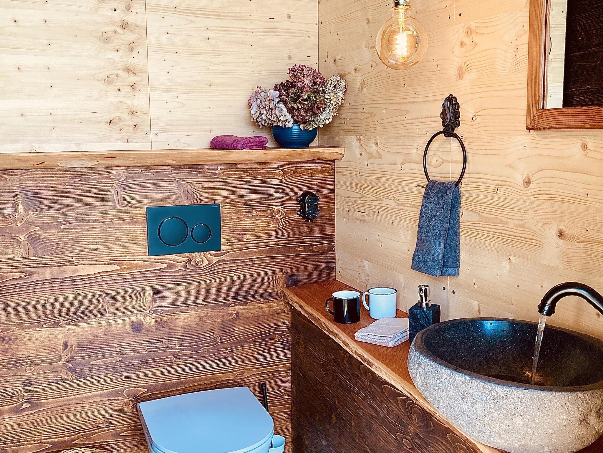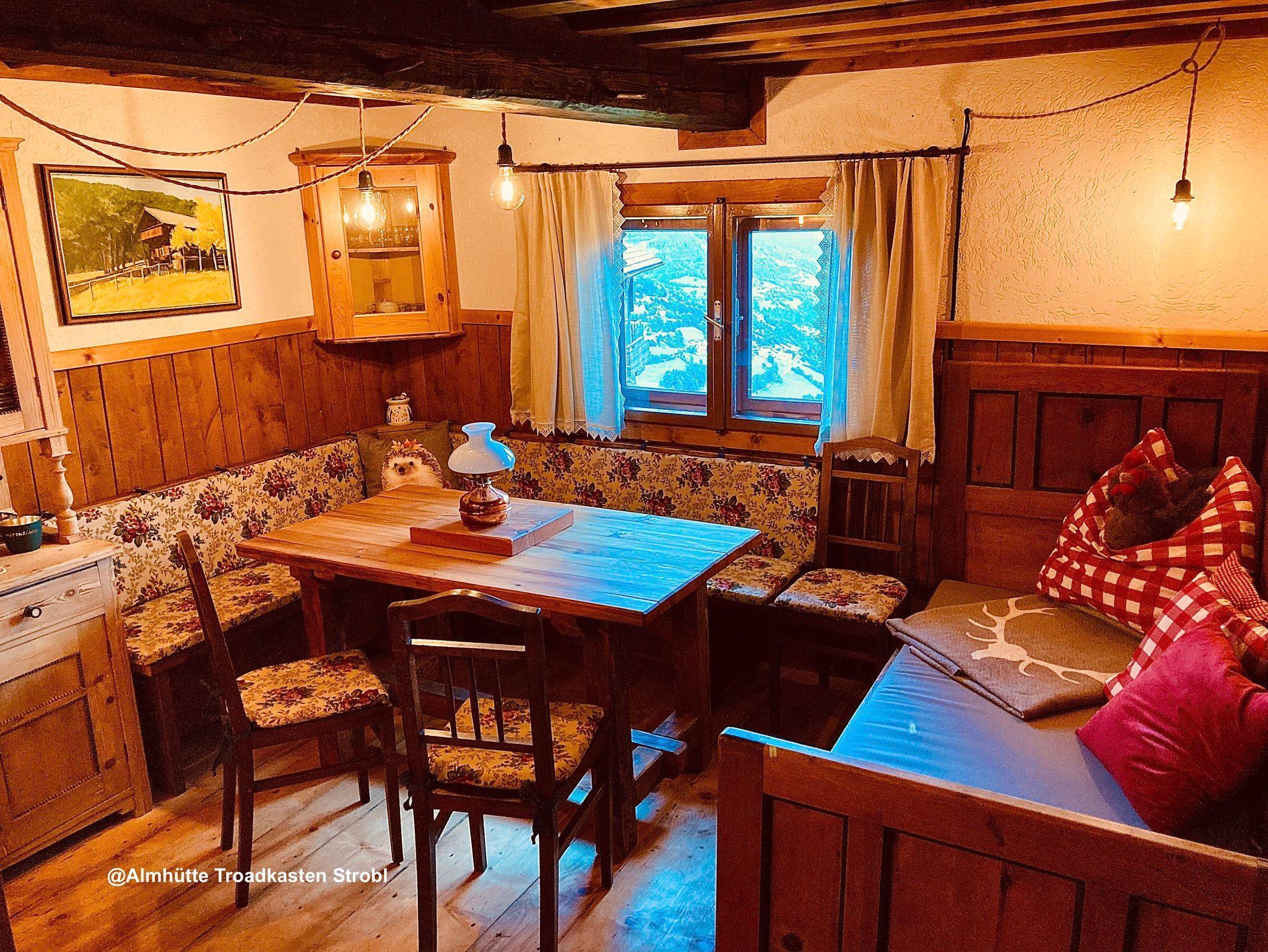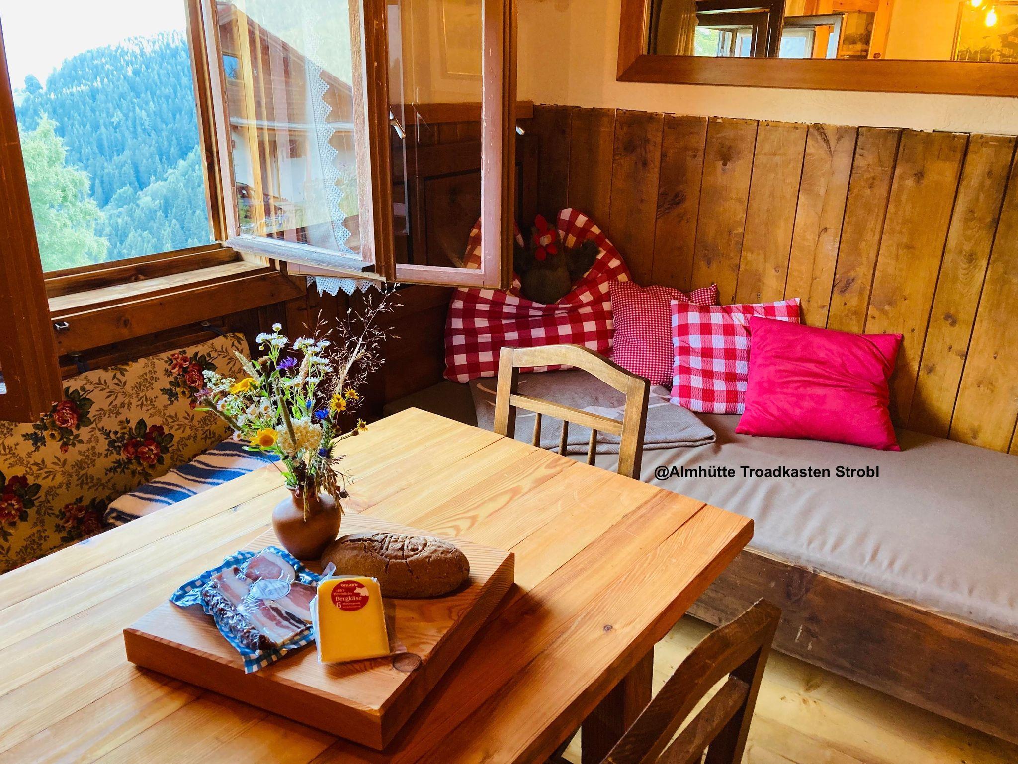 Besonders schmackhaft wird das Essen, wenn du es auf dem Holzfeuer-Herd kochst. Es gibt aber auch einen Retro-Elektroherd mit Backrohr. Der Kühlschrank mit Gefrierfach, sowie das frische Quellwasser zu Warmwasser aus der Abwasch-Armatur aufbereitet, sind für den rund 350 Jahre alten Troadkastn ein wahrer Luxus. Wie auch der neue Zubau aus duftendem Lärchenholz vom eigenen Wald, indem du Dusche mit Fussbodenheizung und separatem WC vorfindest.