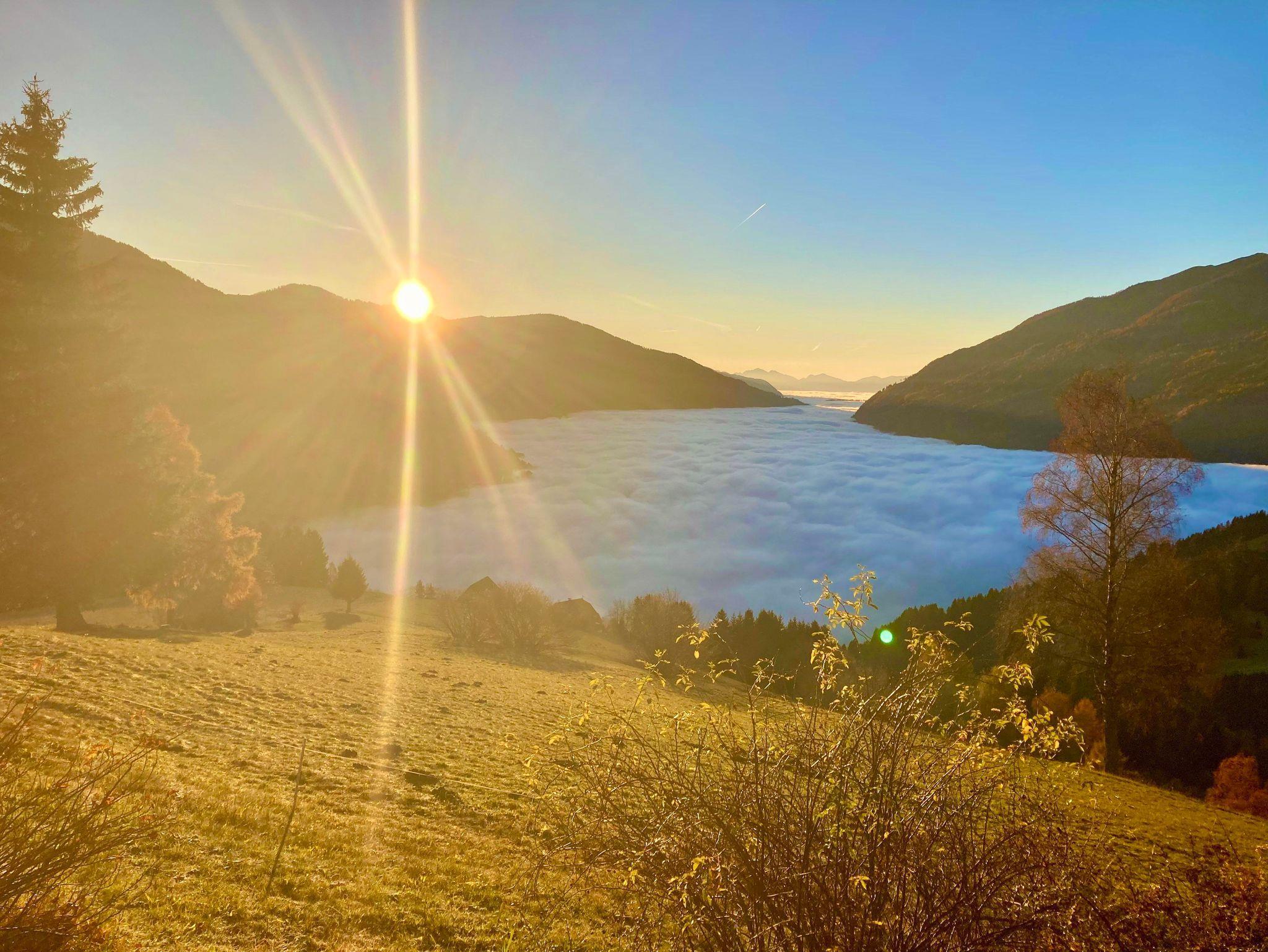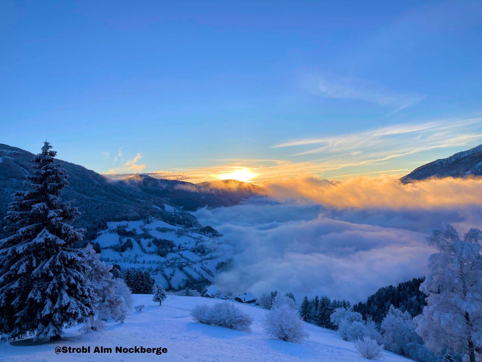 Ihr werdet verzaubert sein, von den vielen einzigartigen Stimmungen, mit denen euch hier heroben die Natur täglich beschenkt. Mal bauschige Wolkendecke im Tal. Ein strahlend blauer, wolkenloser Himmel bis zum Horizont. Fantastischer Sonnenaufgang über der Nockalm im Osten. Atemberaubend schönes Abendrot über den Karawanken. Ein imposanter Sternenhimmel mit Lichtermeer im Tal. Und romantisches Schneetreiben mit frisch verschneiten Tiefschneehängen im Winter.