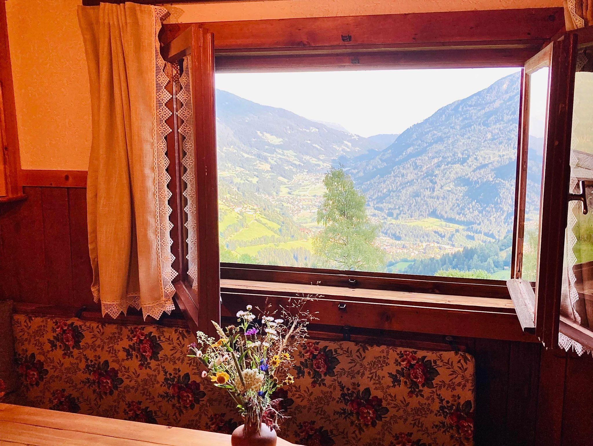 Für die Schlafmützen haben das Fenster und die Balkontüre sowohl Lodenvorhänge als auch Holzbalken zum Verdunkeln. Dann hörst du nur noch die Grillen, die dich in den Schlaf zirpen. Morgens lockt dich ein prächtiges Vogelkonzert auf den Balkon und du wirst staunen über den fantastischen Blick, den dir die Berg-und Pflanzenwelt hier heroben schenkt.