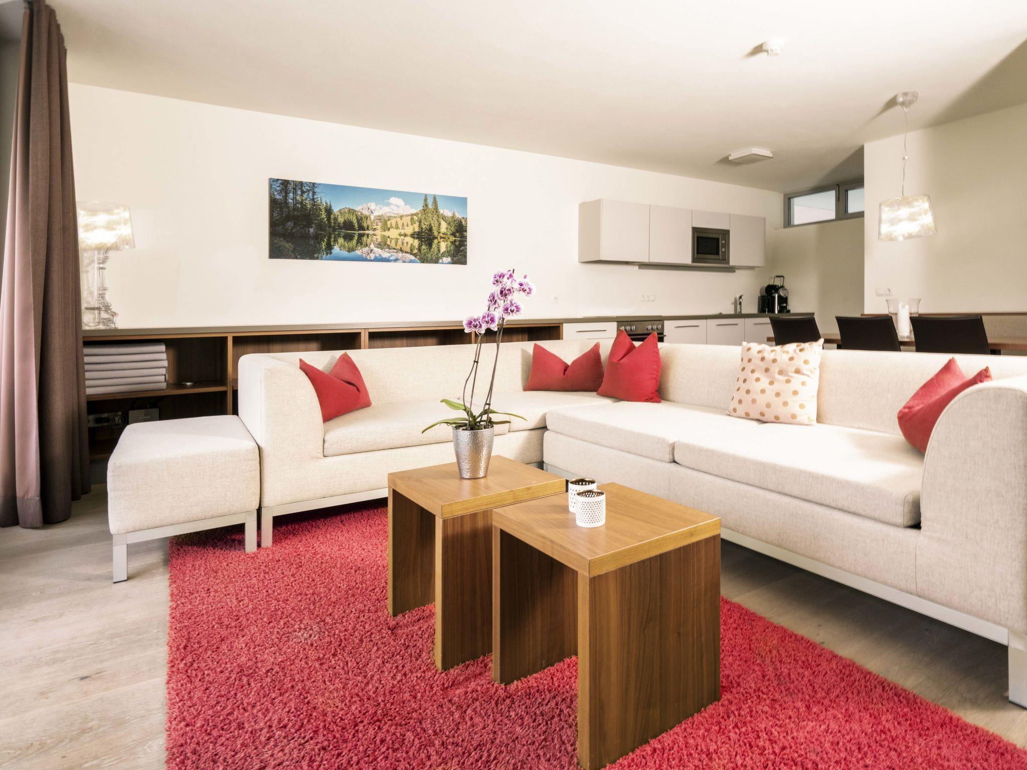Radstadt: Modern resort "Tauernresidence by Alps Resorts". 5 km from the centre, in a quiet, sunny position, 1.7 km from the skiing area, in the countryside. For shared use: swimming pool (seasonal availability: 13.May. and 11.Sep.). In the house: sauna, fitness room, steam room, infrared sauna, spa area for shared use, central heating system. Parking at the house. E-charging station. Supermarket 500 m, restaurant 500 m, outdoor swimming pool 3.3 km, thermal baths "Therme Amadé" 6 km. Golf course (18 hole) 50 m, skisport facilities 1.7 km. Nearby attractions: Dachstein 30 km, Salzbergwerk 58 km, Hallstatt 63 km, Lichtensteinklamm 25 km, Stadt Salzburg 70 km, Eisriesenwelt 35 km. Well-known ski regions can easily be reached: Skischaukel Radstadt Altenmarkt 1.7 km. Hiking paths: Fageralm 2 km. The photo is just an example.