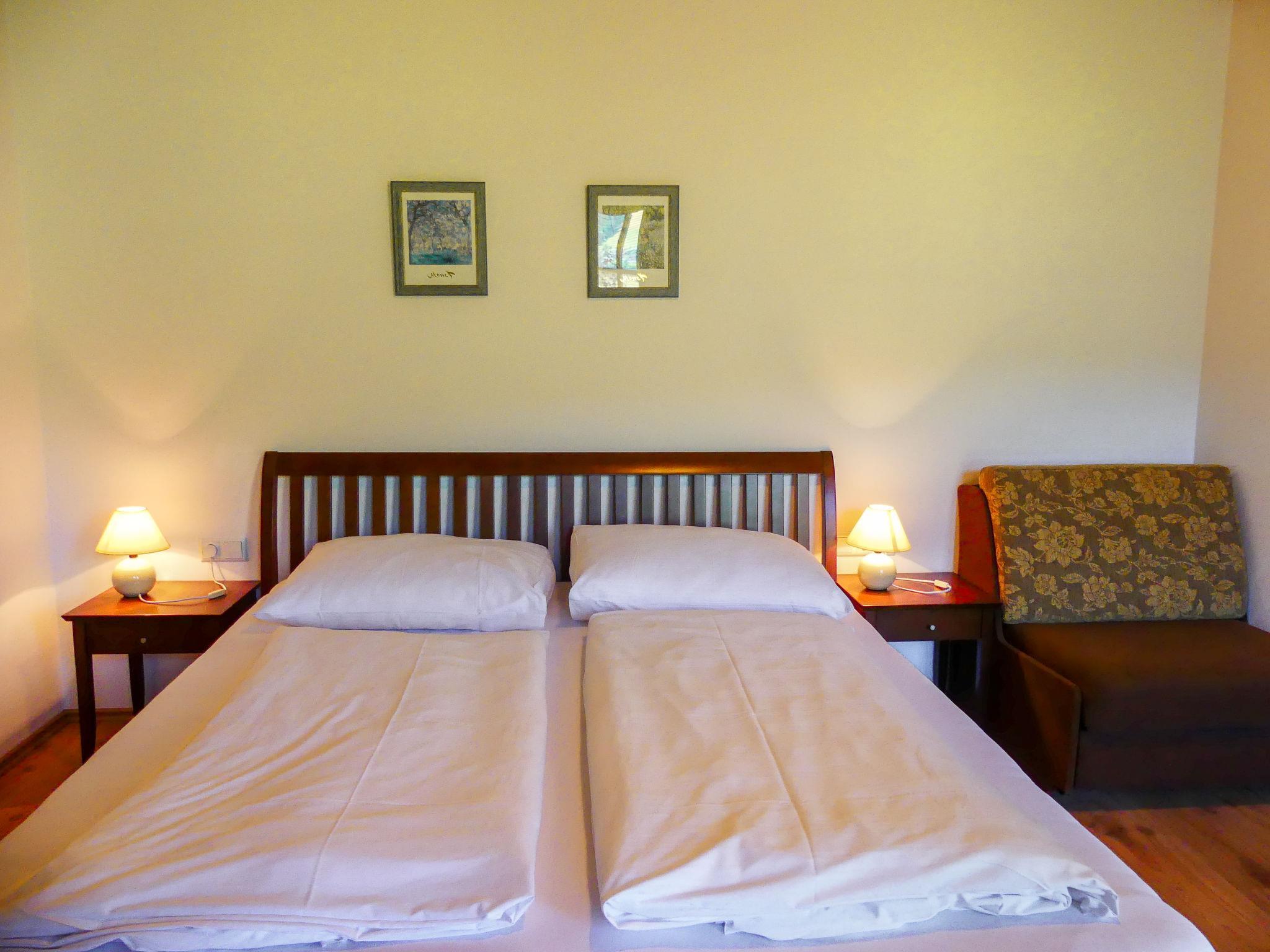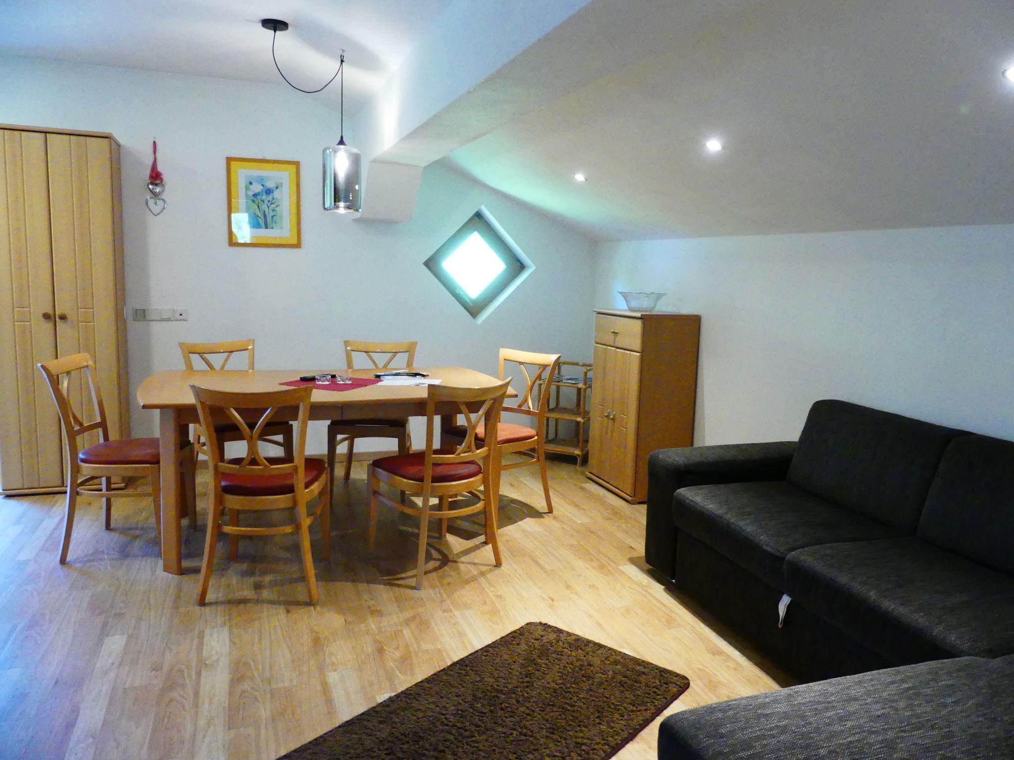 "Rossbrand", 3-room apartment 80 m2 on 1st floor. Bright, partly with sloping ceilings, comfortable and cosy furnishings: entrance hall. 1 room with 1 double bed and 1 pull-out bed (1 pers.), shower/WC. 1 room with 1 double bed and 1 pull-out bed (1 pers.). Kitchen-/living room (oven, dishwasher, 4 ceramic glass hob hotplates, microwave, freezer, electric coffee machine) with dining table, 1 double sofabed. Exit to the balcony. Shower/WC. 2 balconies, south facing position and north facing position. Very beautiful view of the mountains and the countryside. Facilities: hair dryer. Internet (WiFi, free). Please note: non-smokers only. Fire extinguisher. When there are less than the maximum number of guests staying at the property, not all of the housing units will be available for use. 50417-000-308-2020