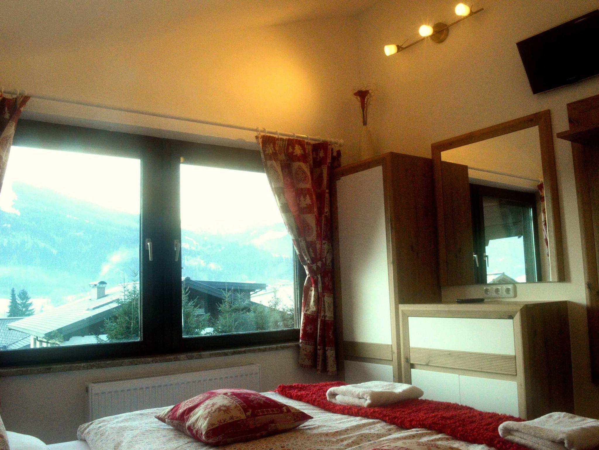 Die Zimmer bieten einen atemberaubenden Blick über das Tal und die Skipisten, die Sie entweder von innen oder von außen auf dem Balkon genießen können. Jedes Zimmer verfügt über ein Doppelbett mit zwei Matratzen und zwei Einzelbetten und Unser Familienzimmer.