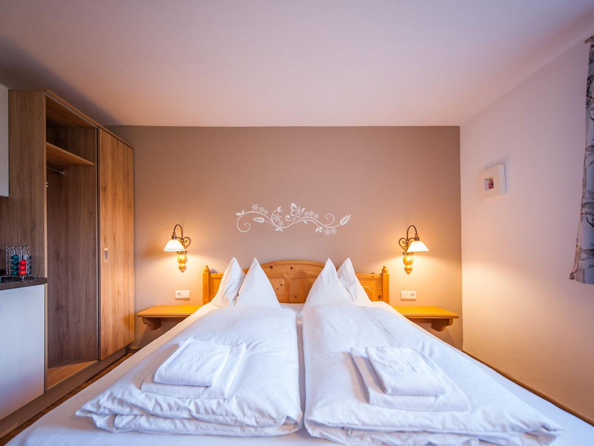 Das Doppelzimmer ist 22m² groß, befindet sich im Bauernhaus im 2. Stock und ist mit einer kleinen Küche,(Kühlschrank, Wasserkocher, Kaffeemaschine, Mikrowelle,…) Essplatz, DU/WC, Flachbild-Kabel TV und kostenlosen WLAN ausgestattet.