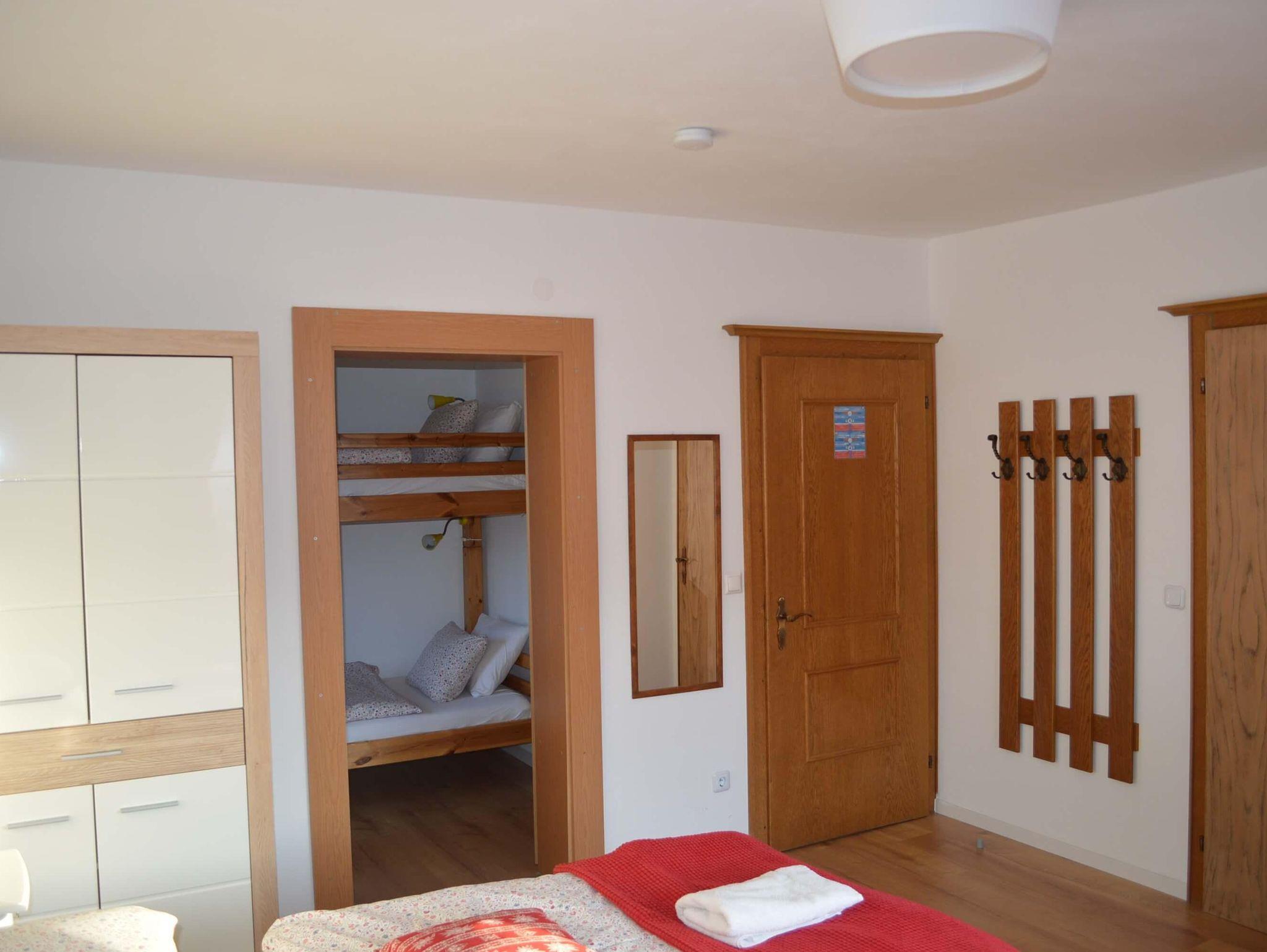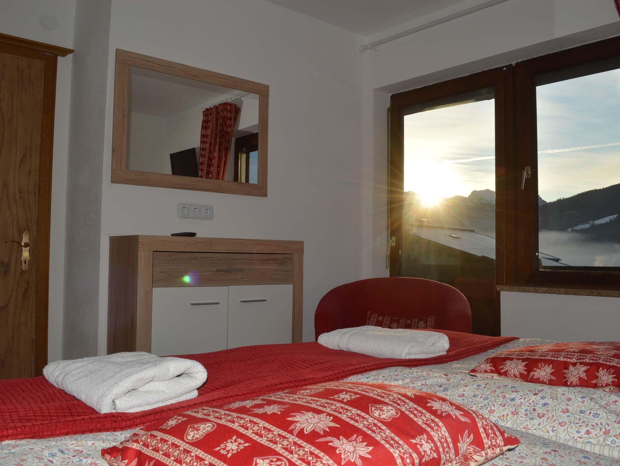 Die Zimmer bieten einen atemberaubenden Blick über das Tal und die Skipisten, die Sie entweder von innen oder von außen auf dem Balkon genießen können. Jedes Zimmer verfügt über ein Doppelbett mit zwei Matratzen und zwei Einzelbetten und Unser Familienzimmer.