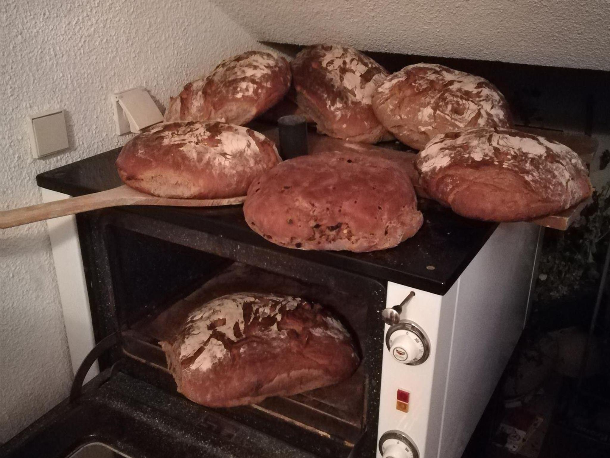 Zum Frühstück gibt es selbstgebackenes Brot, frische Milch und eigene Eier.