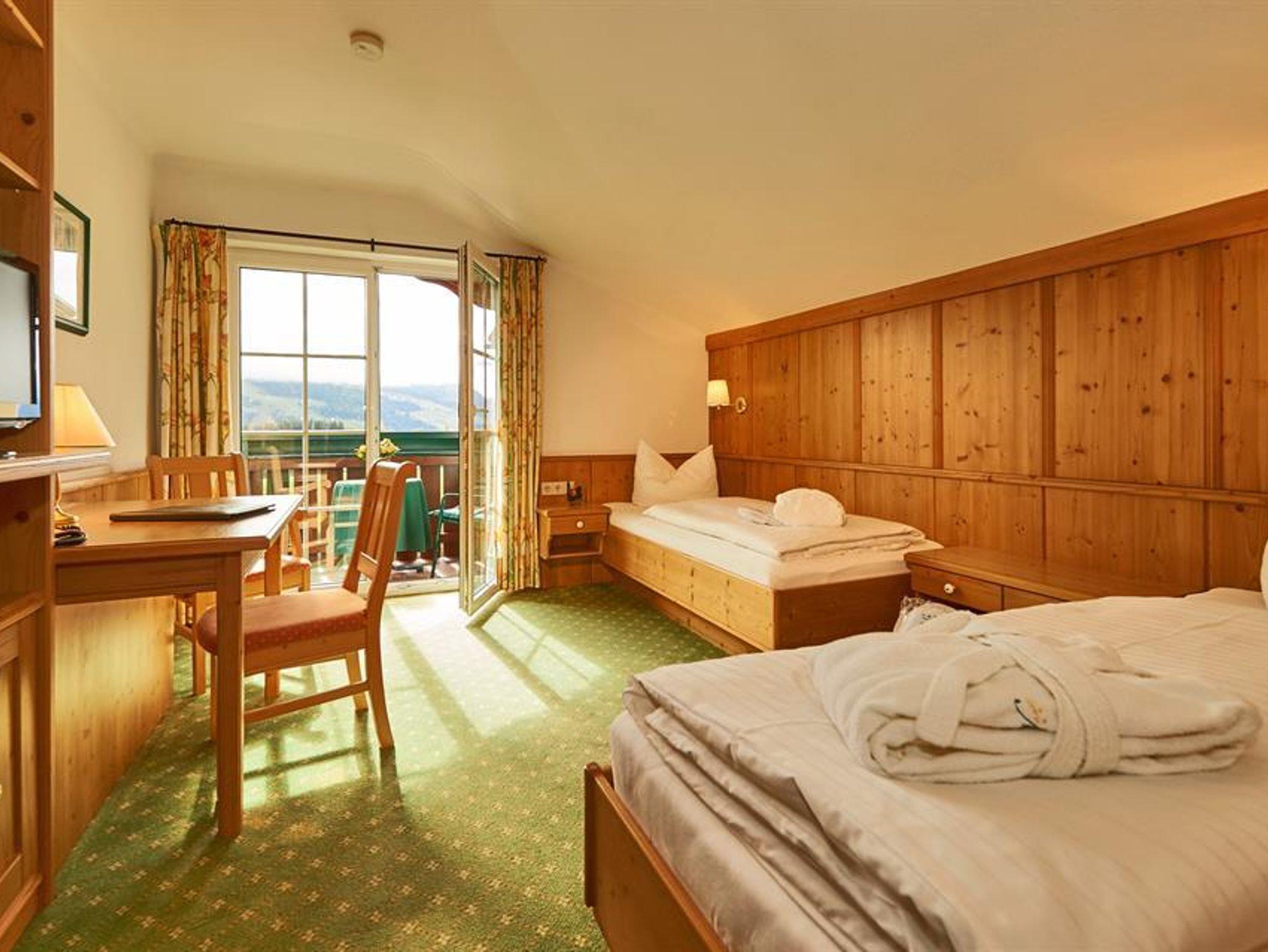 Unsere komplett eingerichteten und komfortablen Ferienwohnungen für 2-5 Personen bieten Ihnen einladende Schlafzimmer, moderne Badezimmer mit separatem WC, einen großen Wohnschlafraum mit Balkon und wunderschönem Panoramablick auf die umliegende Berglandschaft. In der voll ausgestatteten Küche mit gemütlicher Sitzecke genießen Sie gesellige Urlaubstage mit Freunden und Familie. Jede Ferienwohnung ist auch mit unserem köstlichen Frühstück oder Halbpension buchbar.