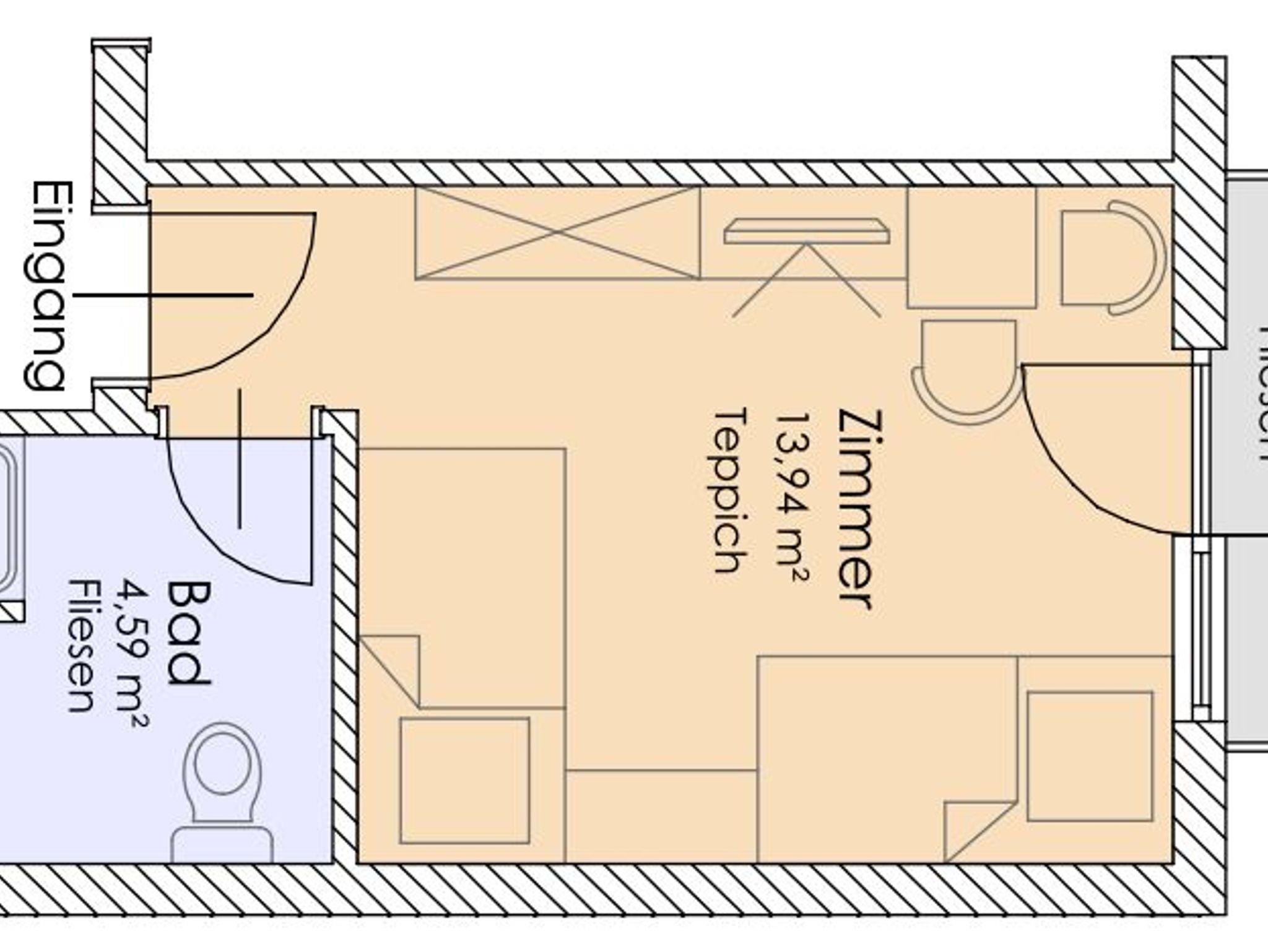 Doppelzimmer mit getrennten Betten für 2 Personen, Dusche, WC, SAT-TV,