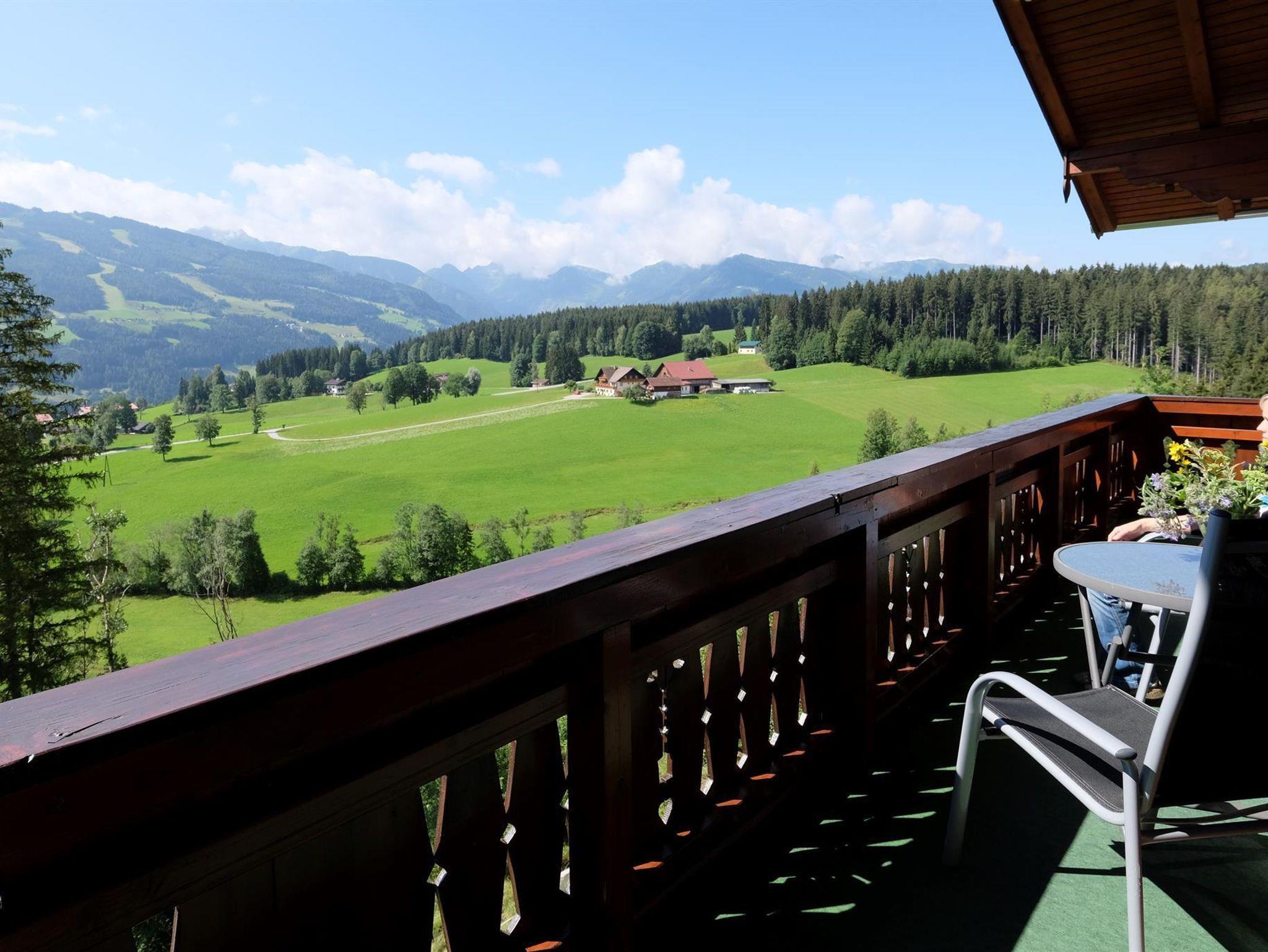 Die sonnigen Ferienwohnungen in unserem Haus Alpenblick sind mit rustikalen Holzmöbeln eingerichtet. Die Ferienwohnung Dachstein mit 72m² verfügt über zwei Badezimmer, eine vollausgestattete Küche inkl. Grill, Backrohr und Geschirrspülmaschine sowie eine gemütliche Sitzgelegenheit und einen nordseitigen Balkon. Auf der Südseite befindet sich der große Balkon mit viel Platz und einen fantastischen Ausblick auf die Schladminger Tauern.