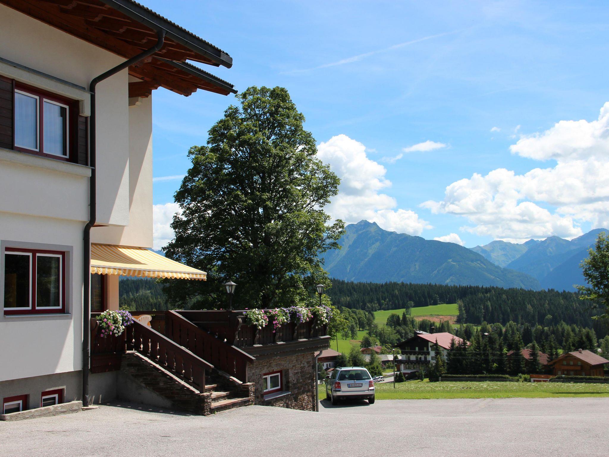Balkon mit atemberaubender Aussicht auf die Dachstein- oder Schladminger Tauernseite.