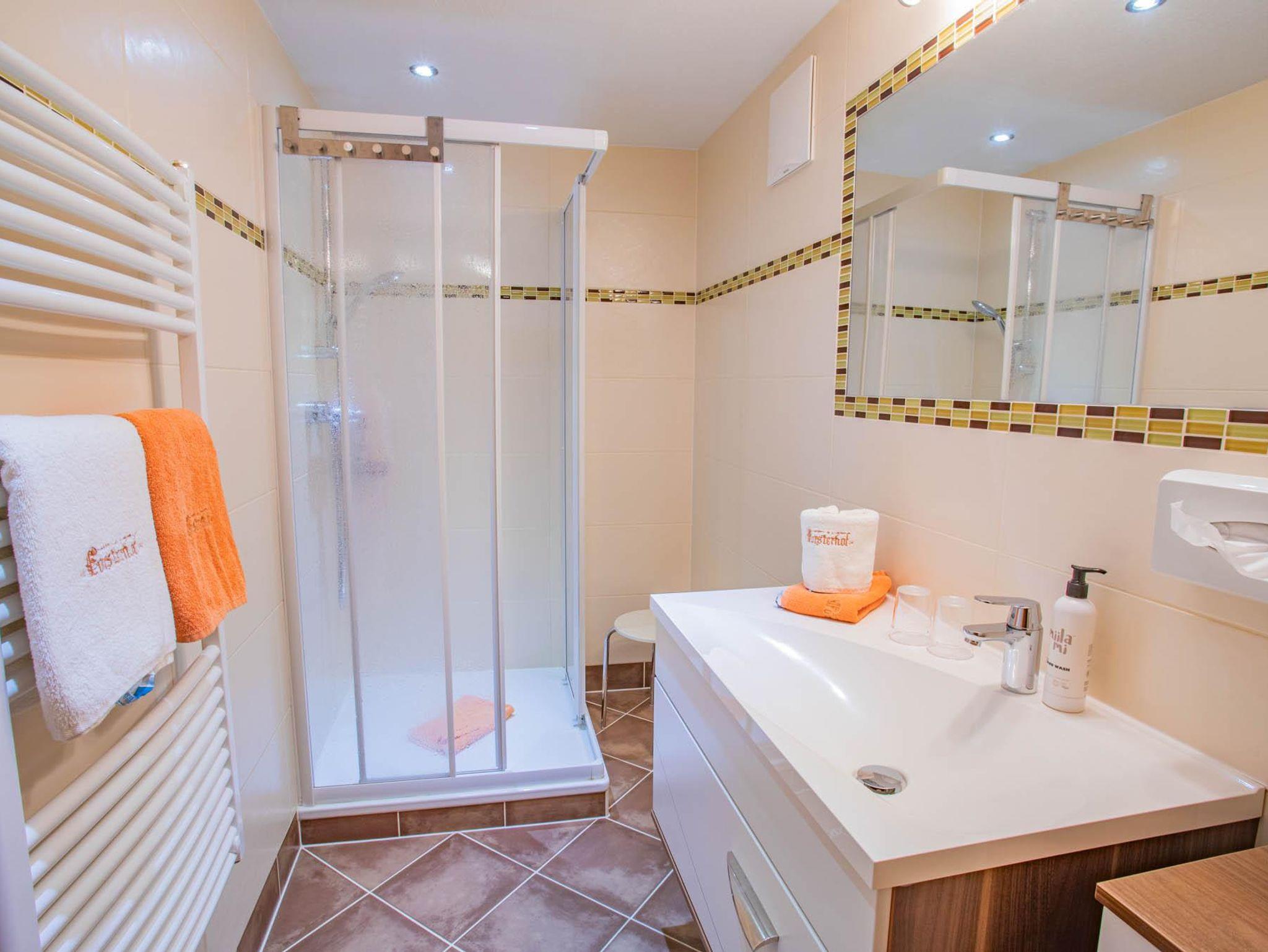Unsere Appartements wurden nach einem durchgehenden, abgestimmten Raumdesign gestaltet und bieten jeglichen Komfort. Die Austattung beinhaltet unter anderem: Vorraum mit Garderobe Wohnbereich Essecke Badezimmer mit Fön, Radio abgetrenntes WC E-Herd Mikrowelle Geschirrspülmaschine Kaffeemaschine Mixer Eierkocher diverses Geschirr Satelliten TV gratis W-LAN