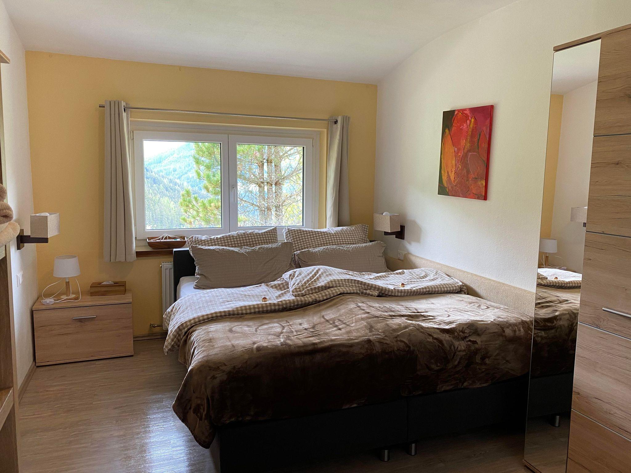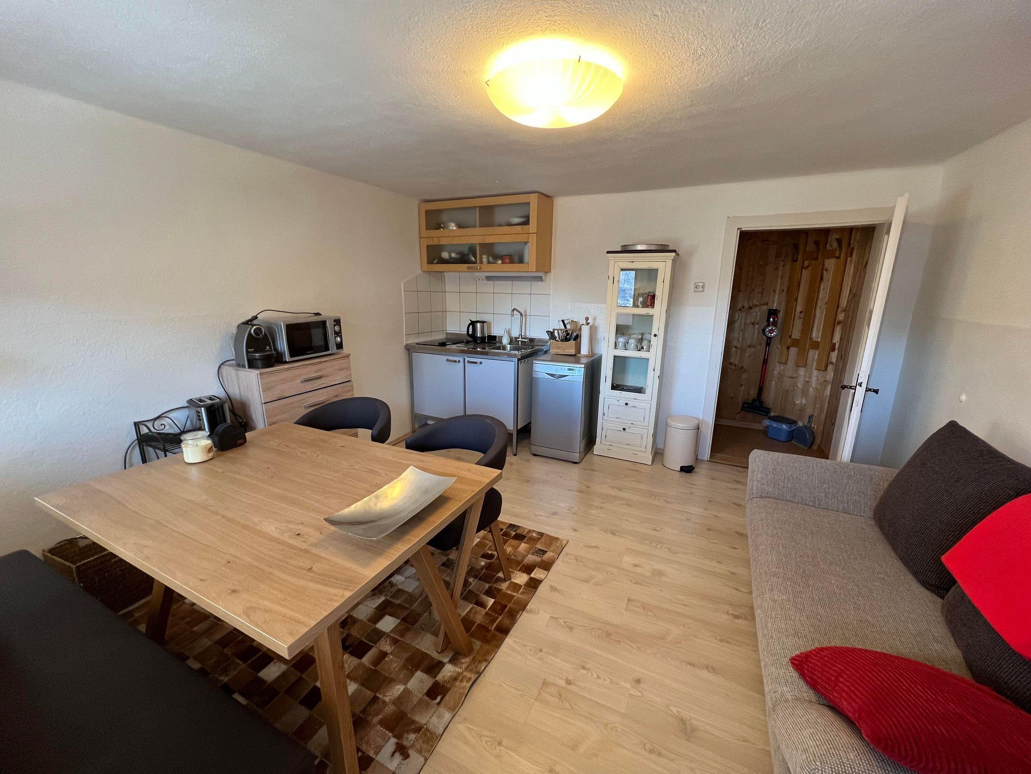 26 Quadratmeter mit Doppelbett 2 Meter x 1,80 Meter und 2 x Einzelbett 2 Meter x 1 Meter WC, Dusche, Waschbecken Gratis WLAN, Gratis Wintercard und Sommercard Südbalkon, für maximal 4 Erwachsene oder 2 Erwachsene plus 2 Kinder