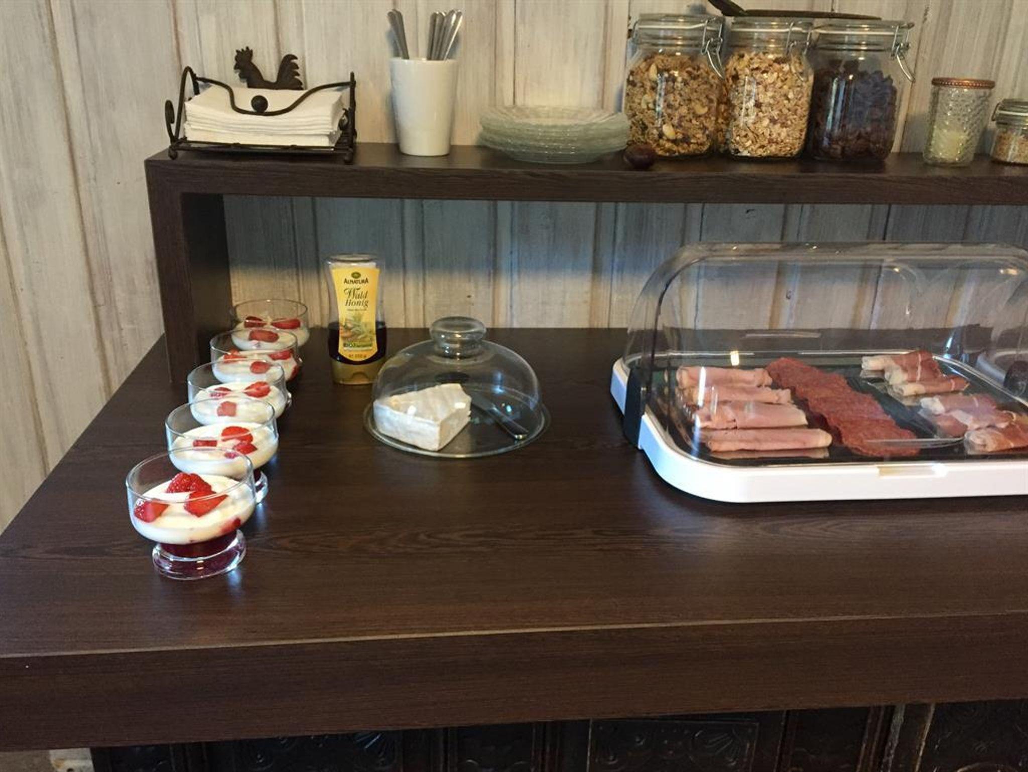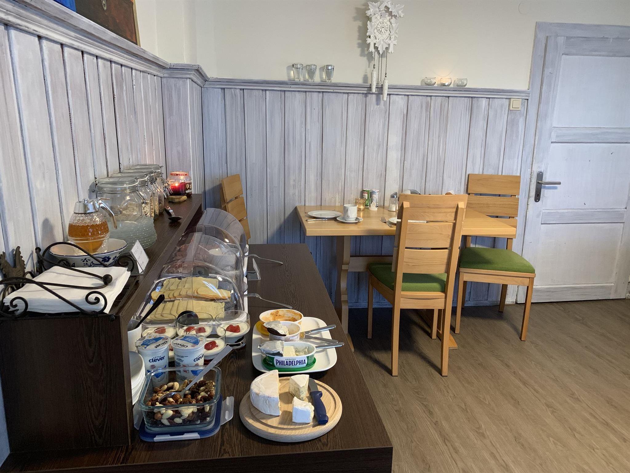 Starten Sie ihren Tag am vielfältigen Frühstücksbuffet mit vielen frischen Produkten im kleinen und gemütlichen Frühstücksraum.