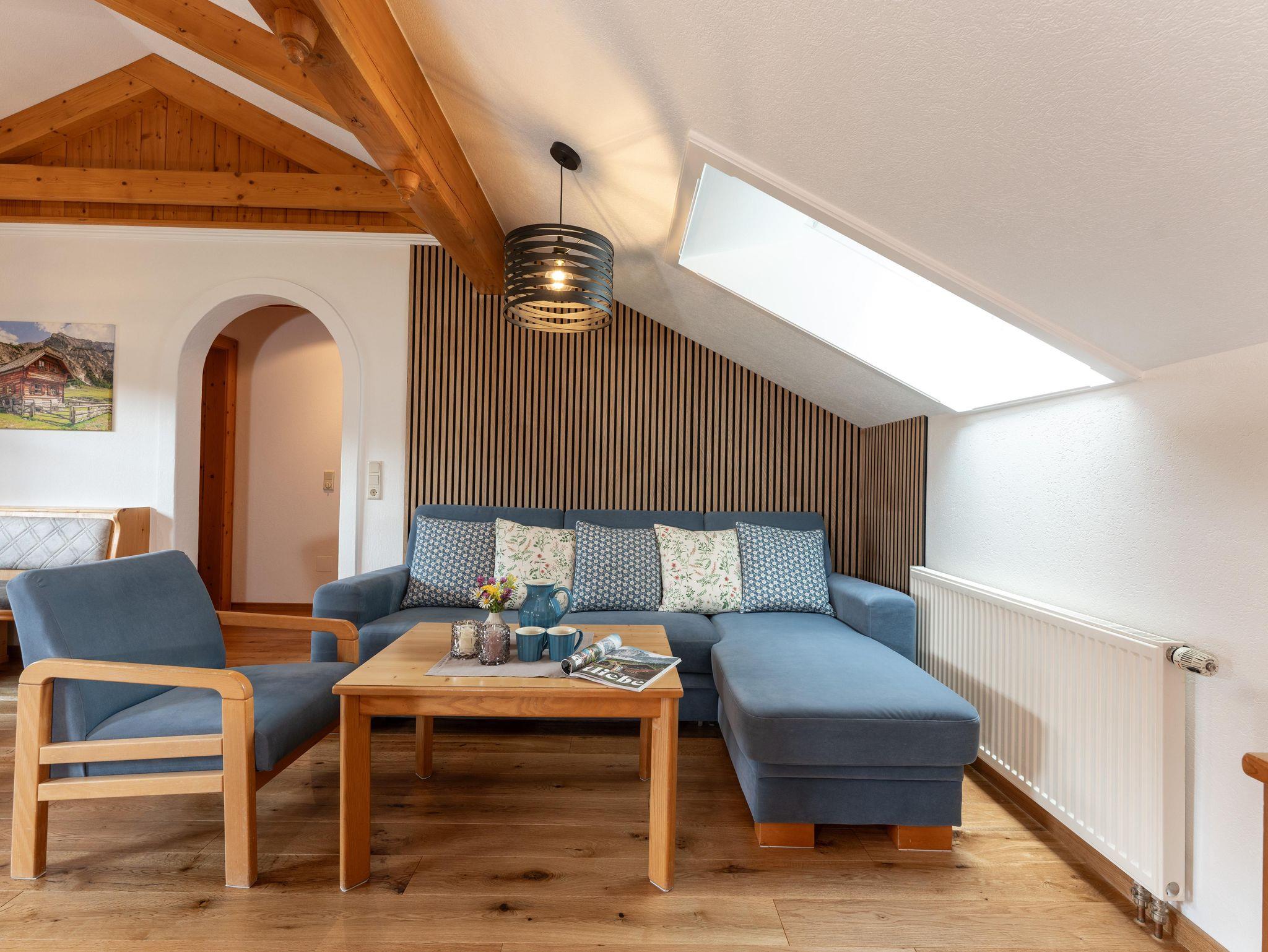 Im Garten ist eine große Liegewiese mit schönen Gartenmöbeln. Hier können unsere Gäste nach der Wanderung so richtig schön entspannen!