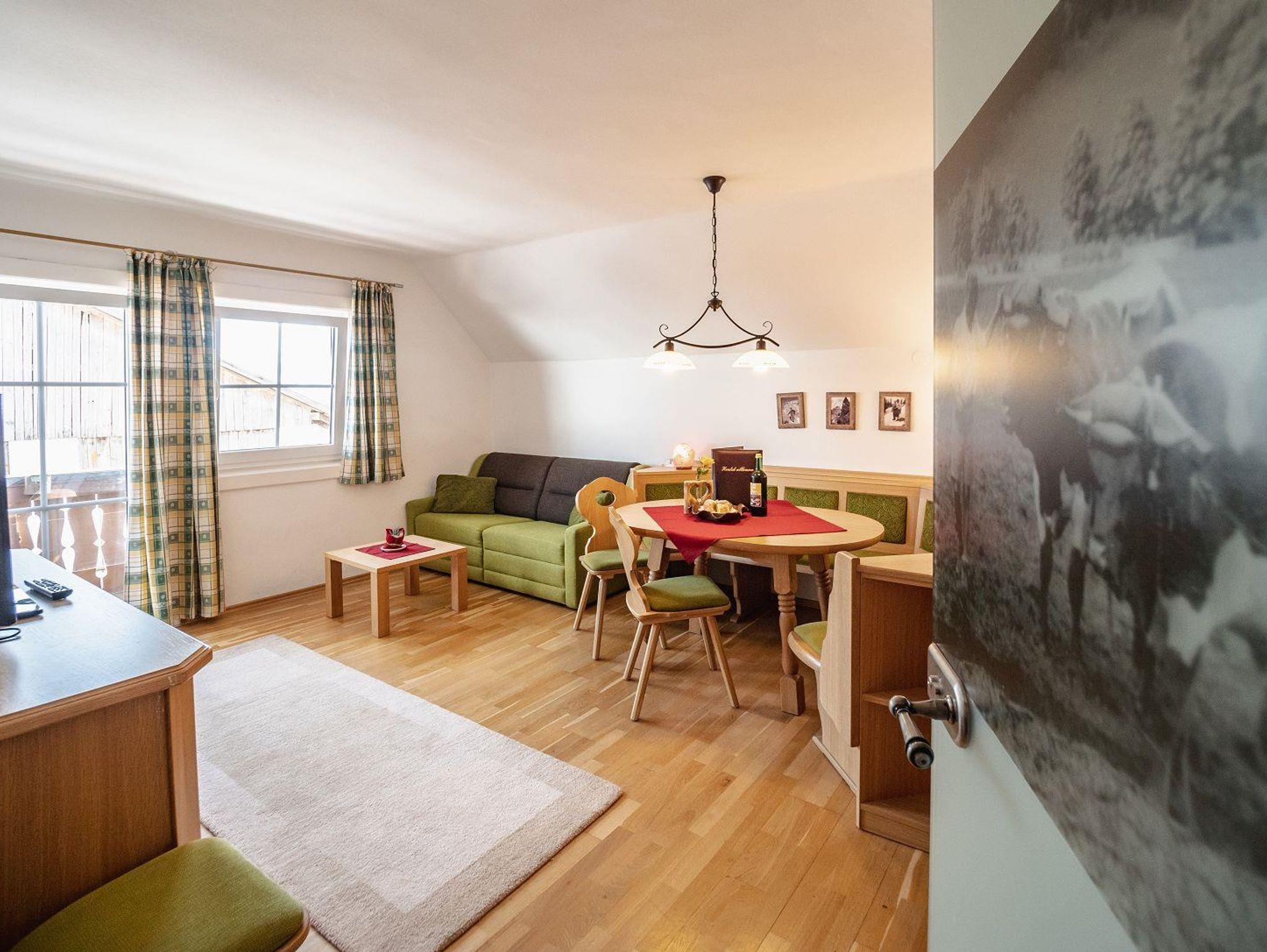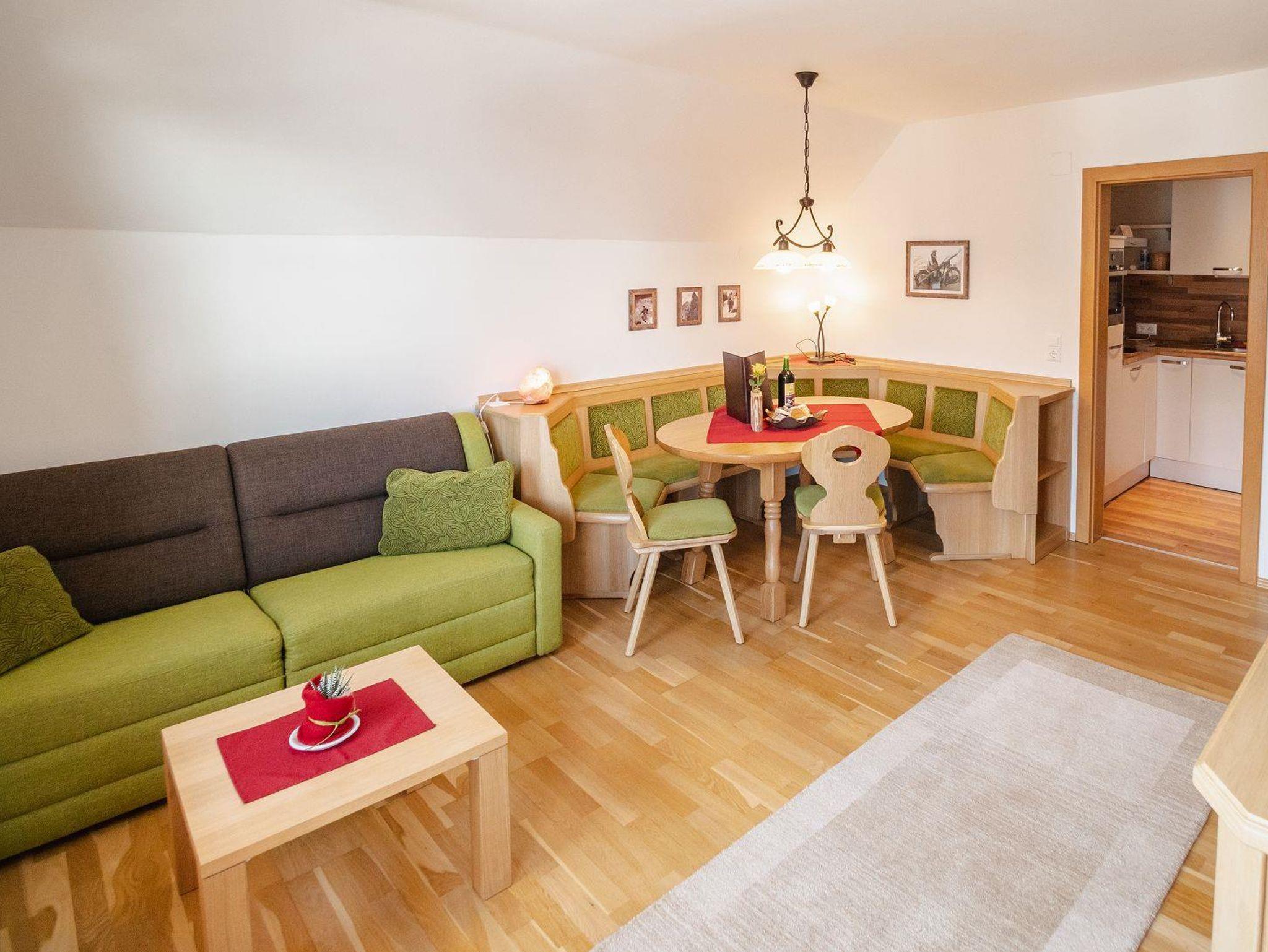 Eine im Landhaus Stil eingerichtete Ferienwohnung mit 45m². Dieses Appartement ist ideal für 2 – 4 Personen und bietet Ihnen jeglichen Komfort den Sie in Ihrem Urlaub wünschen. Das Holz-Loden Schlafzimmer mit Balkon und Badezimmer lädt für kuschelige Stunden ein. Im Wohnraum mit Sitzecke und gemütlicher Couch (Schlafmöglichkeit für 2 Personen) sowie einer voll ausgestatteten Küche können Sie bei einer heißen Tasse Tee verweilen.