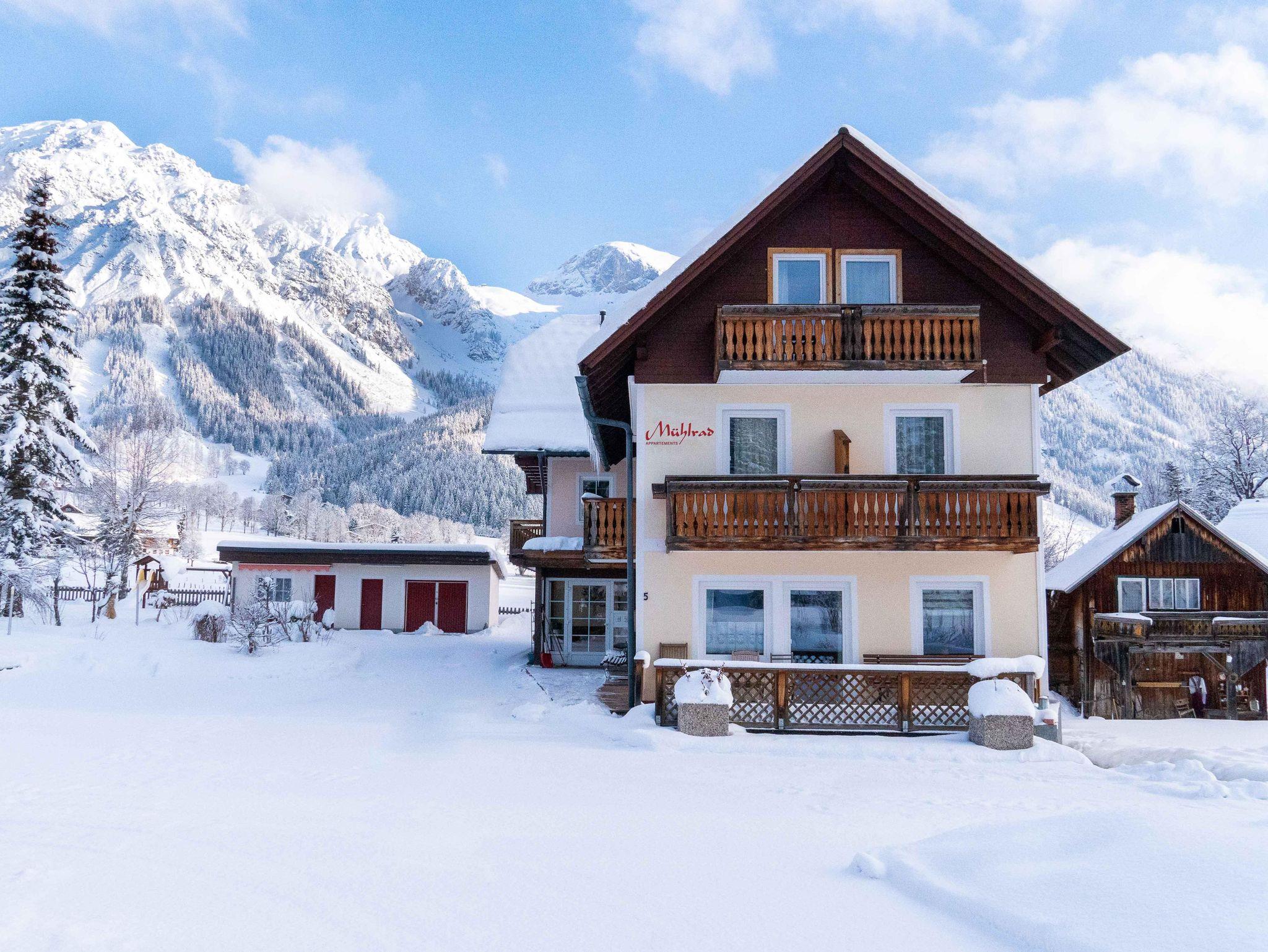 Im Sommer lädt der großzügige Garten am idyllischen Bach zum Entspannen ein, während zahlreiche Aktivitäten wie Wanderungen oder Spaziergänge direkt vom Haus aus beginnen können. Die ruhige und naturnahe Lage wird von einem atemberaubenden Panorama auf das Dachsteinmassiv gekrönt und macht das Mühlrad Appartements zu einem besonderen Rückzugsort für Ihren Urlaub – zu jeder Jahreszeit!