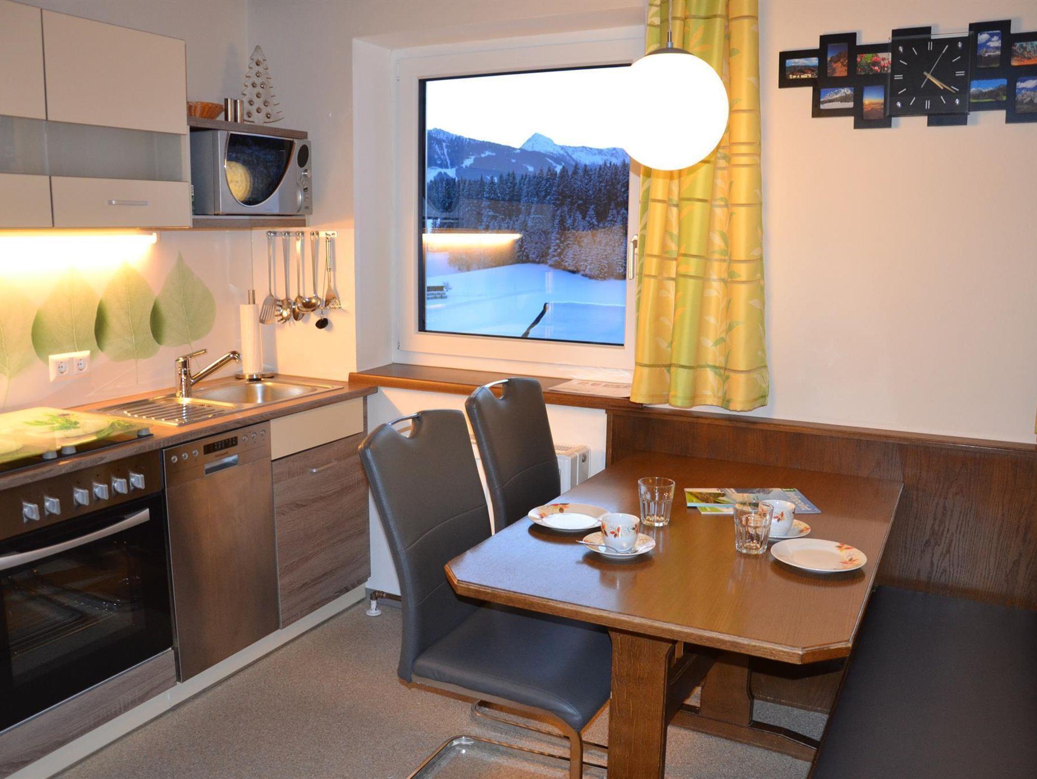 In der kleinen 62m² Ferienwohnung Ramsau, die Platz für bis zu 4 Personen bietet, erwartet Sie ein Doppelzimmer mit Couch, ein Wohnschlafraum, eine vollausgestattete Küche, 2 Badezimmer mit Dusche und WC sowie 2 Balkone. Auf der Nordseite des Hauses mit Bergblick auf das Dachstein Massiv und zur Südseite mit Blick auf die Skiberge Planai, Hochwurzen und Hauser Kaibling.
