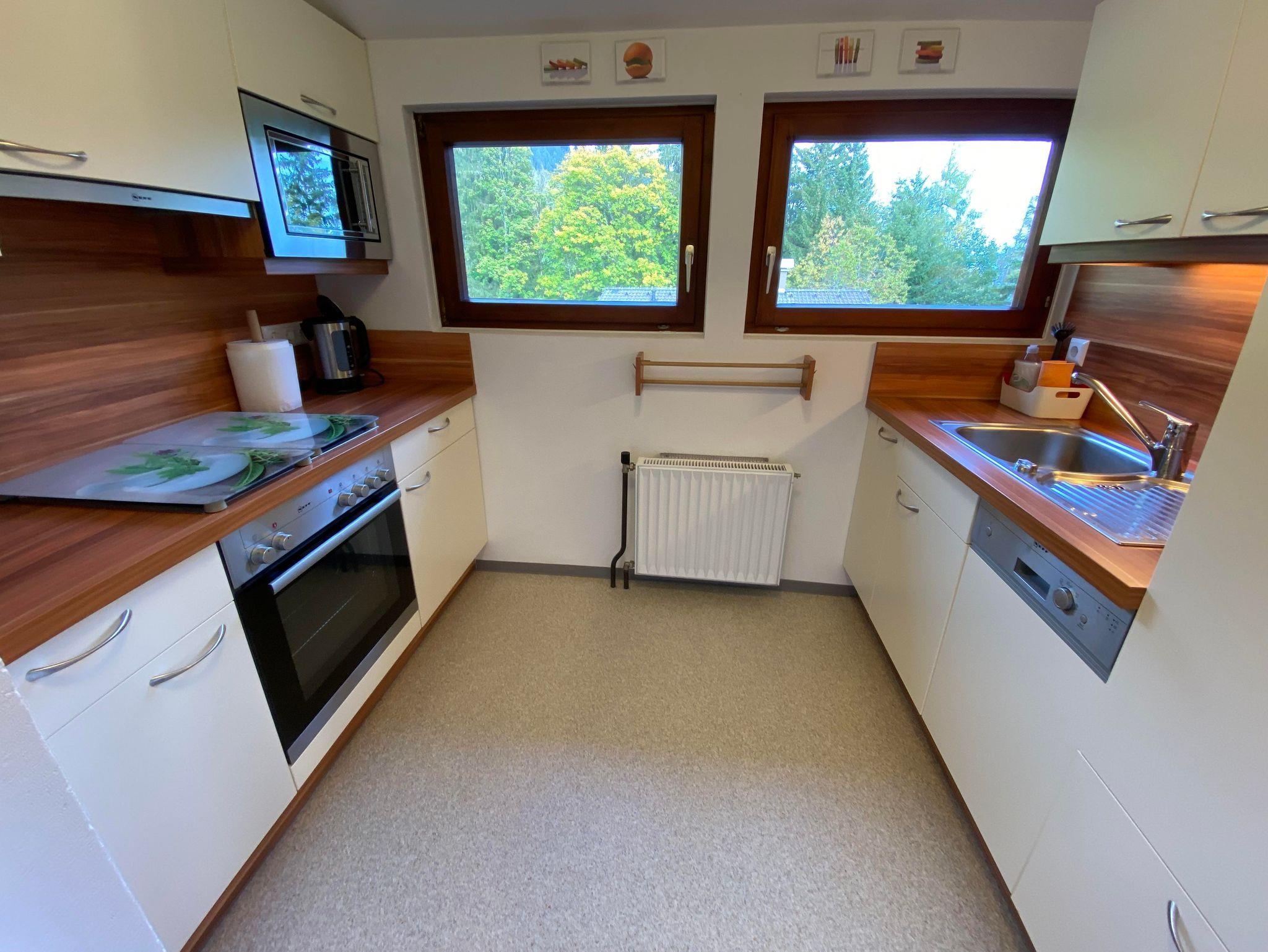Ferienwohnung für 2-4 Personen, 62 m², 1 Schlafzimmer mit DU/WC, 1 Wohnschlafraum mit DU/WC sowie Sat-TV, Stereo Radio, kompl. eingerichtete Küche m. Essecke, nord-, und südseitiger Balkon.