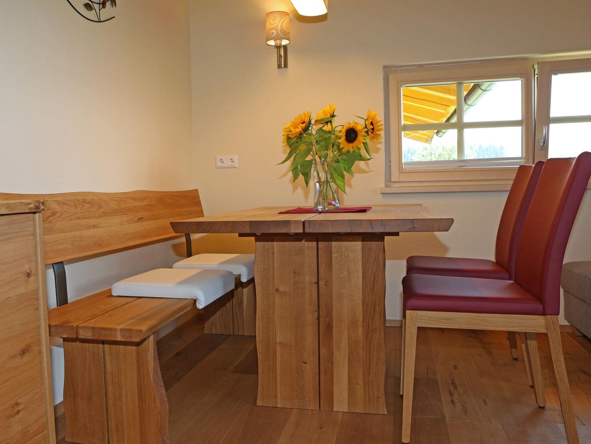 Wir bieten in unserem Haus Alpenperle auch die Möglichkeit, 2 großzügige Ferienwohnungen für 2-4 Personen und eine kleinere für 2-3 Personen zu mieten. Gut durchdacht, von heimischen Handwerksbetrieben mit viel Holz und natürlichen Materiallien ausgestattet, verfügen die beiden großen Wohnungen über je 2 Schlafzimmer, - die kleinere über 1 Schlafzimmer -, ein Bad, ein geräumiges Wohnzimmer mit einer voll ausgestatteten Küche (Geschirrspüler, Induktionsherd, Backrohr), eine Ess- und Couchecke, sowie einen schönen, bei den großen nach Westen und bei der kleinen nach Süden ausgerichteten Balkon, der neben einem herrlichen Ausblick in die Natur auch Sonne bis in die Abendstunden garantiert.