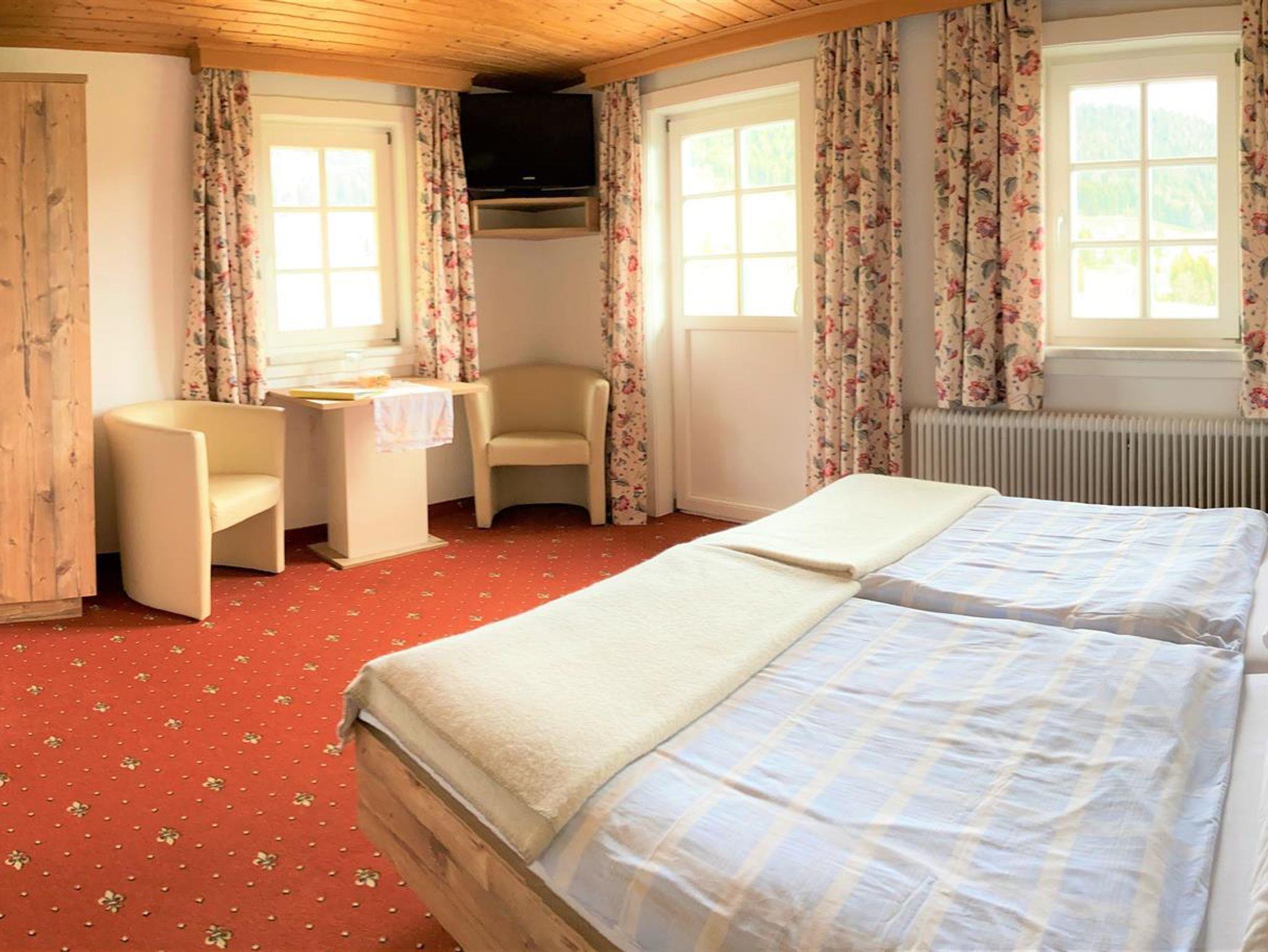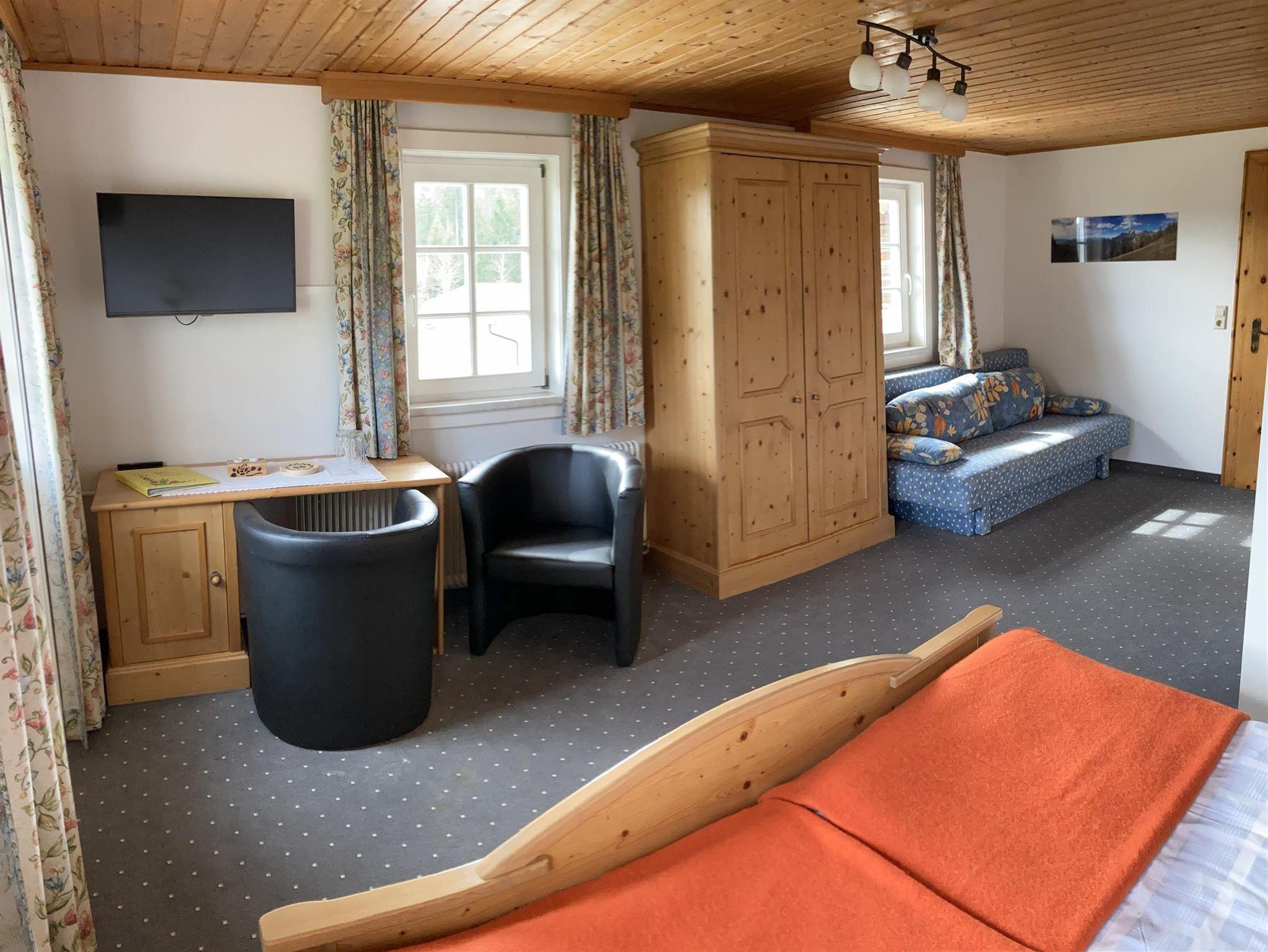Gemütlich, rustikal eingerichtete Zimmer mit Dusche/WC, Sat-TV und Balkon.