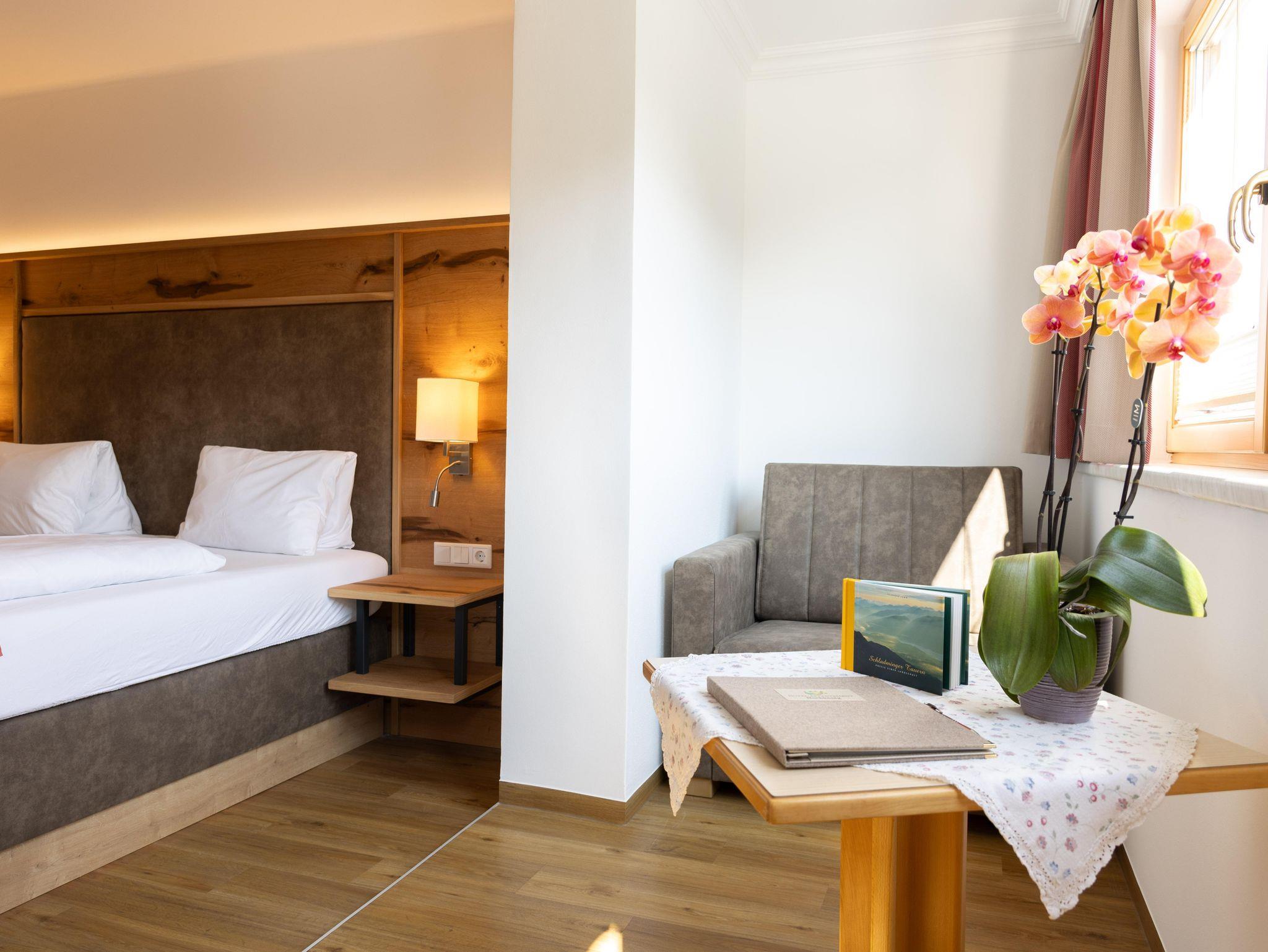 In unserem Hotel bieten wir Ihnen modern eingerichtete Doppel-, Dreibettzimmer und Ferienwohnungen bzw. Appartements. Alle Zimmer verfügen über geräumige Badezimmer, einem eigenen Balkon mit Bergblick, kostenloses WLAN, Flachbild -TV, Zimmersafe, Radio und einen gemütlichem Sitzbereich.