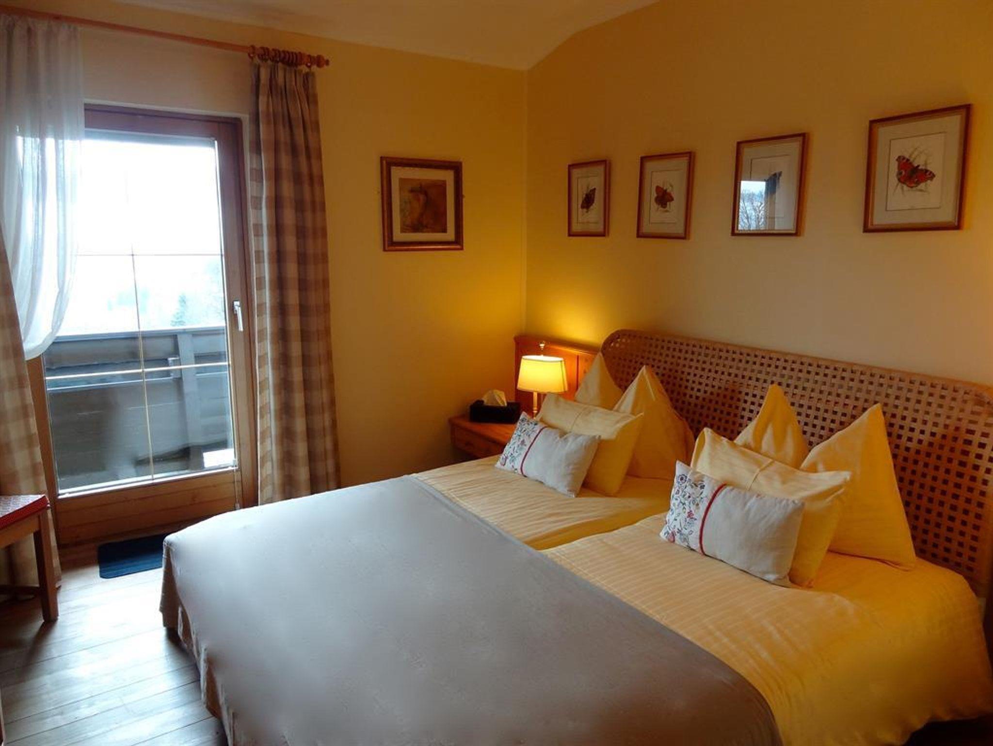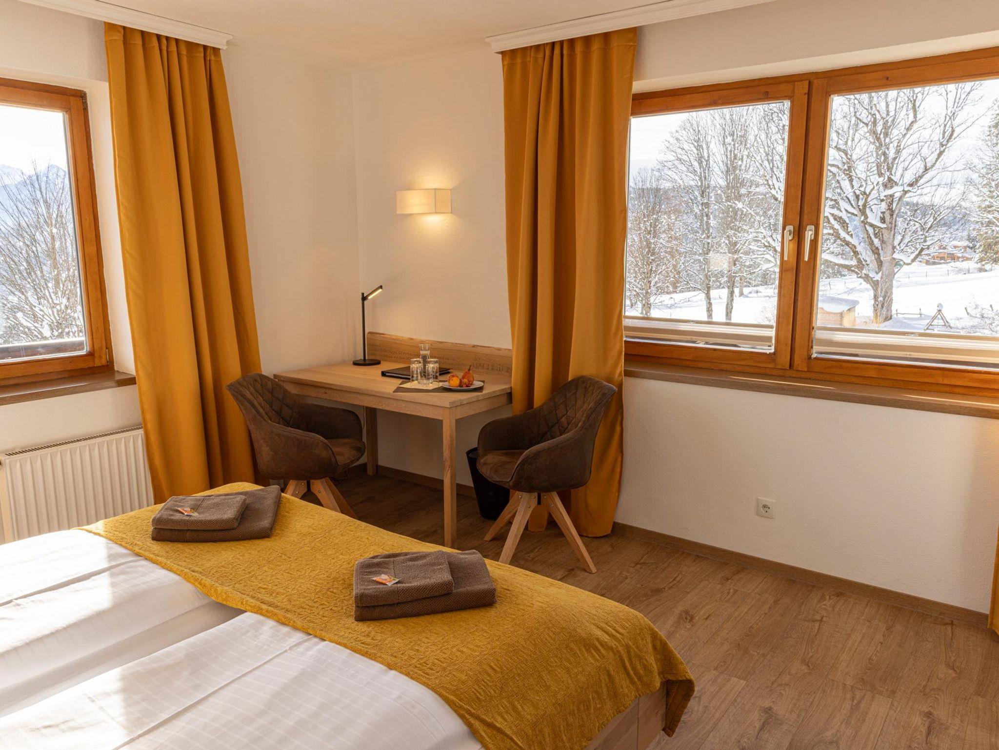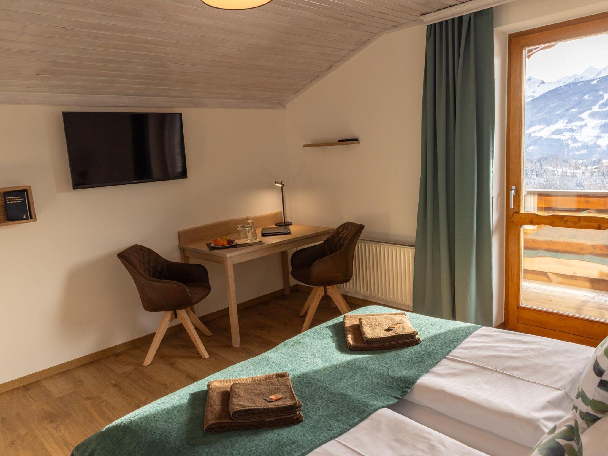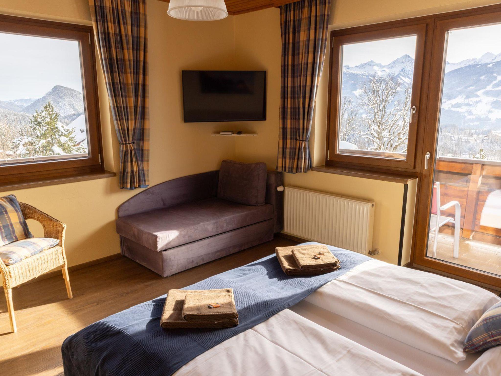 Sehr komfortable Zimmer mit einem Balkon und herrlichem Blick auf die Berge.