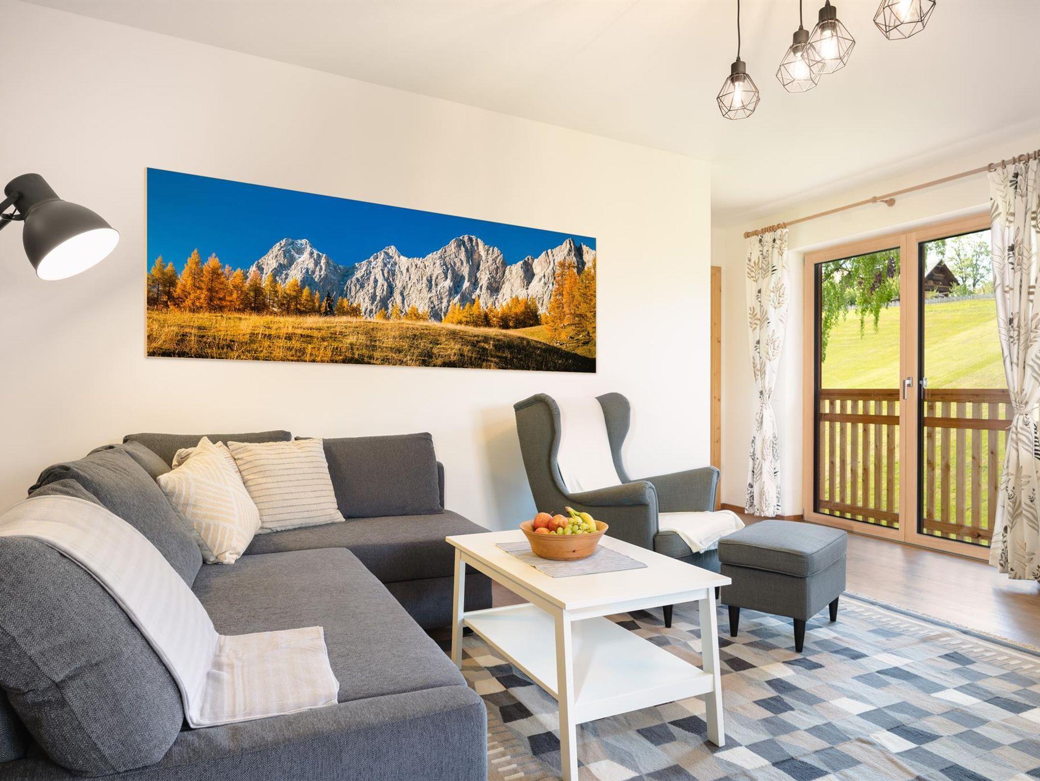 Wir bieten Ihnen ein sehr geräumiges und gemütliches Appartement, das komplett und mit viel Liebe ausgestattet ist. Die atemberaubende Aussicht und die lichtdurchfluteten Räume laden zum Ausruhen und Erholen inmitten der wunderschönen Region Schladming-Dachstein ein. Pferdefreunde aufgepasst: unsere familienfreundliche Ferienwohnung liegt in unmittelbarer Nachbarschaft zu einem der größten Reiterhöfe in der Ramsau! Tanken Sie in ruhiger Lage auf und genießen Sie trotzdem den Luxus in kürzester Zeit (8 Fahrminuten zur Planai...)Mitten im Geschehen zu sein. Im Winter führt die Langlaufloipe direkt am Haus vorbei und die Bushaltestelle ist nur wenige Gehminuten entfernt. Unsere Sommergäste profitieren selbstverständlich in vielfältiger Weise von der Sommercard! Freuen Sie sich auf einen entspannten Urlaub mit hohem Wohlfühlfaktor!