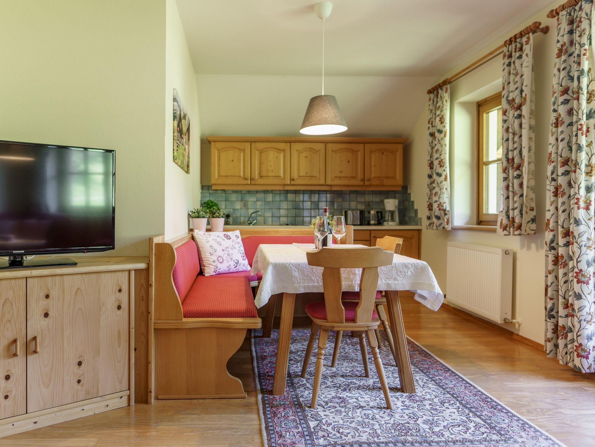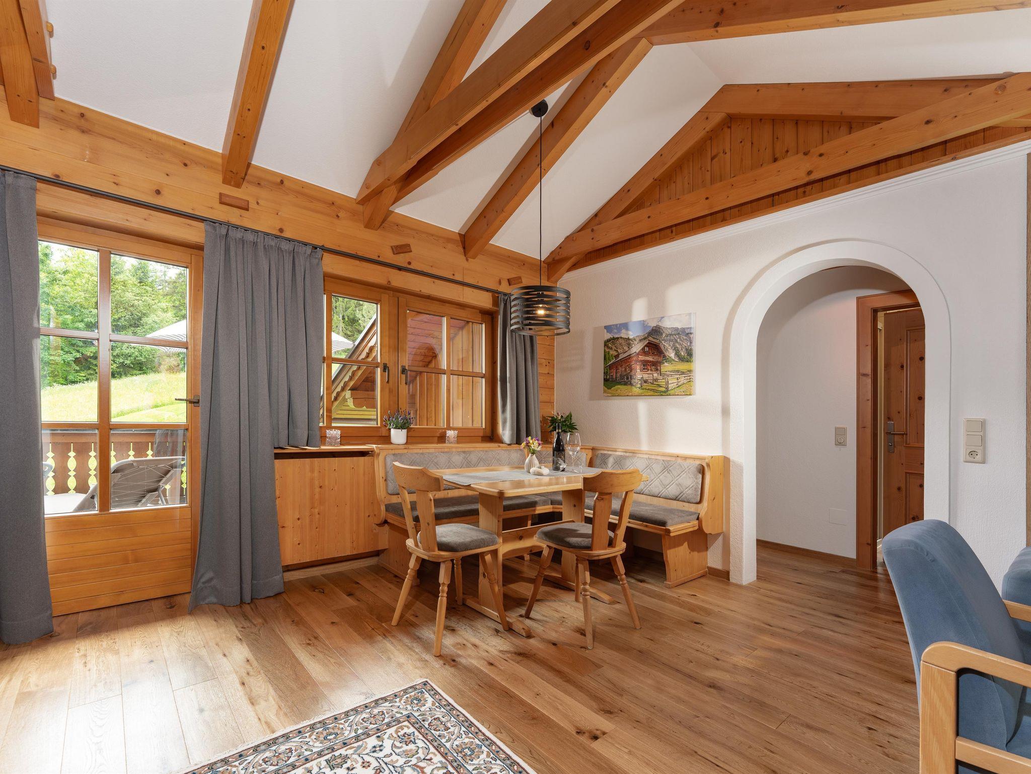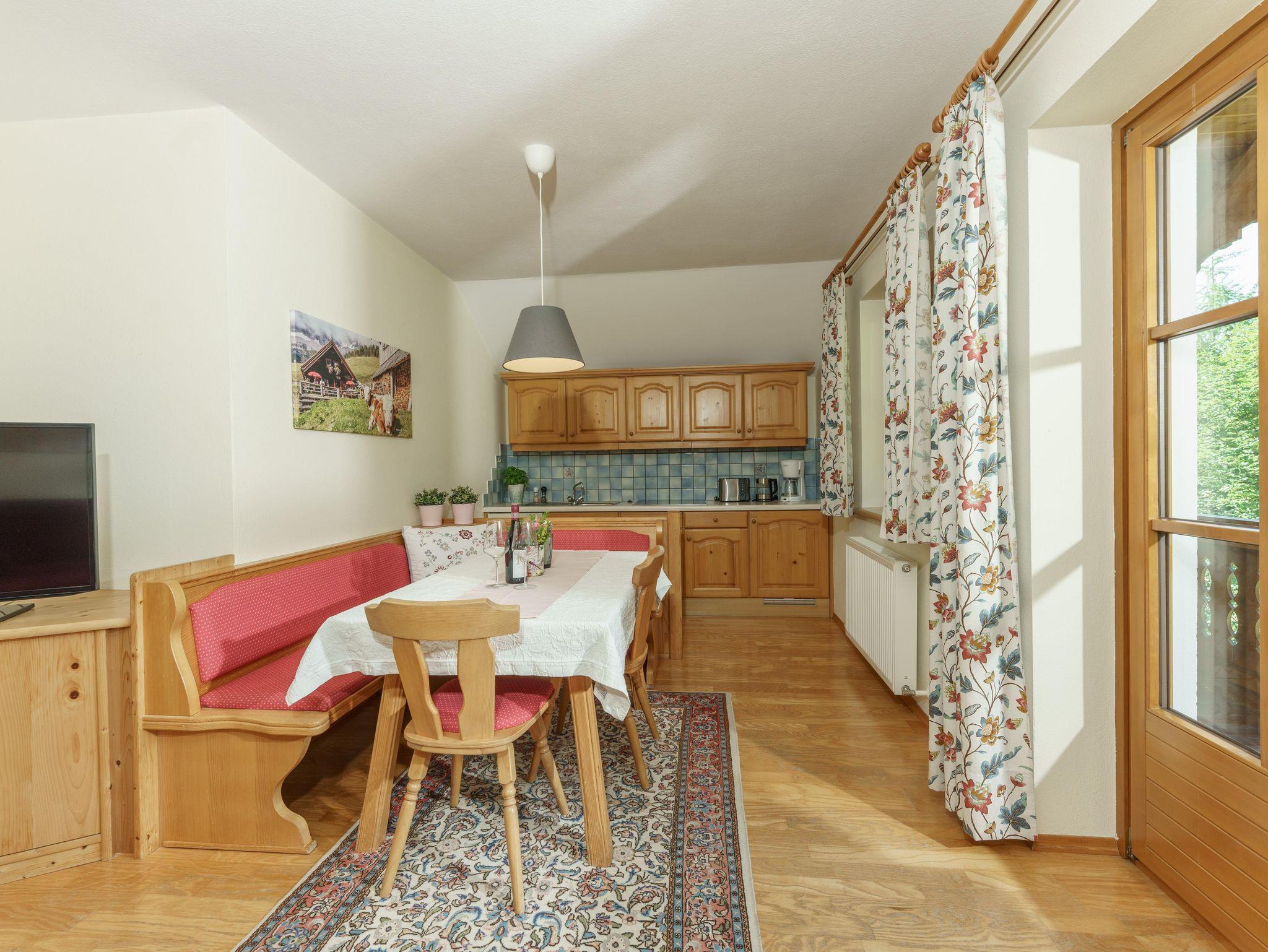 Sehr schönes, helles Appartement im 1. Stock. Das Appartement Talblick hat ca 55 m² mit einem Vorraum, einem Schlafzimmer, DU/WC getrennt und einem großen Wohnraum mit schöner Küchenecke und gemütlicher Wohnecke. Vom Schlafzimmer aus hat man einen herrlichen Blick ins Ennstal und auf die Berge der Schladminger Tauern. Vom Wohnraum aus kommt man auf den großen Holzbalkon in Südrichtung :) FLAT TV und Gratis W-LAN im Appartement.